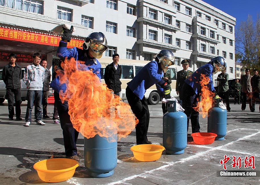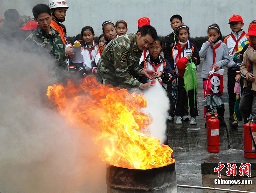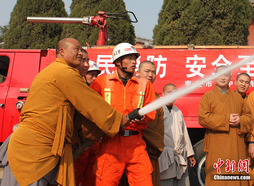 在第20個“11.9”全國消防日前夕,11月7日,山東省棗莊市公安消防部門針對寺廟用火、用電增多,火災(zāi)風險不斷增大的實際情況,在轄區(qū)開展了消防“進寺廟”宣傳活動,讓寺廟的僧眾掌握基本消防知識,提高消防意識。今年全國“消防日”宣傳活動的主題是“全民關(guān)注消防·生命安全至上”。季龍 攝 圖片來源:CNSPHOTO