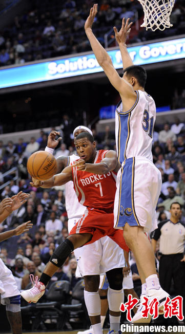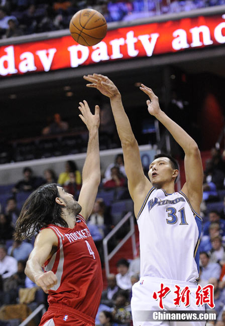 北京時間11日,NBA“中國德比”在華盛頓打響。姚明所在的火箭客場以91-98不敵易建聯(lián)效力的奇才。姚明和易建聯(lián)兩人并沒在場上面對面交手。姚明只打了6分鐘就受傷遺憾提前離場。易建聯(lián)此后替補上場,兩人失之交臂。此役阿聯(lián)表現(xiàn)搶眼,全場蓋帽4次,還貢獻了13分,搶下7個籃板。