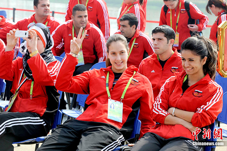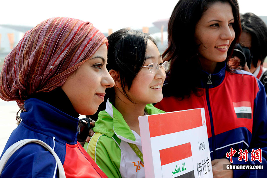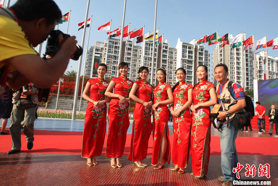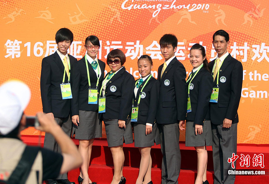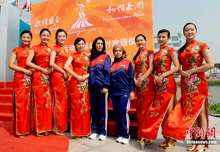 11月11日,靚麗的外國女運(yùn)動(dòng)員亮相廣州亞運(yùn)村,當(dāng)天,敘利亞、伊拉克、尼泊爾代表團(tuán)在亞運(yùn)村舉行升旗儀式。中新社記者 王東明 攝