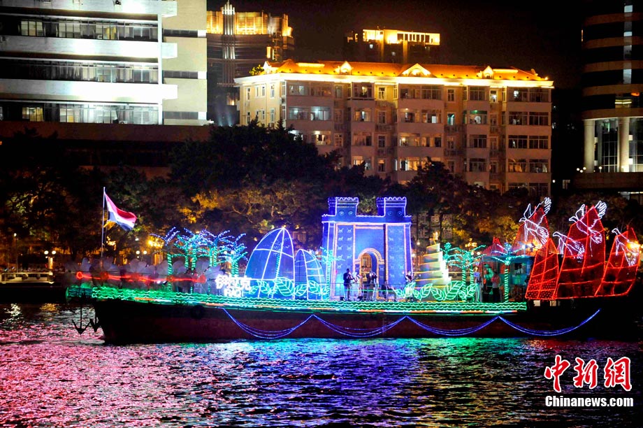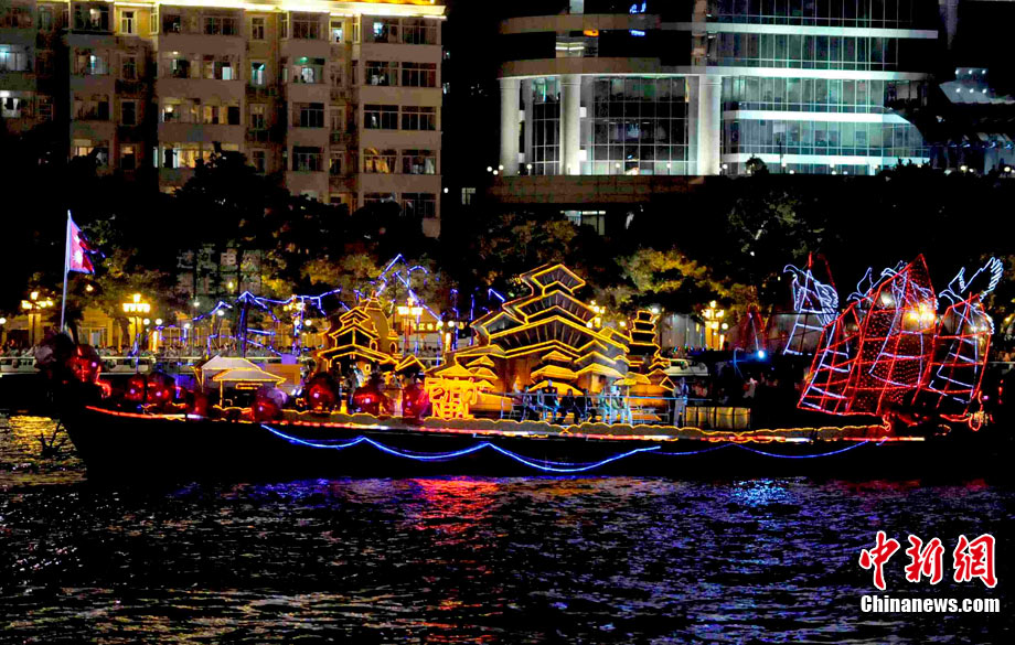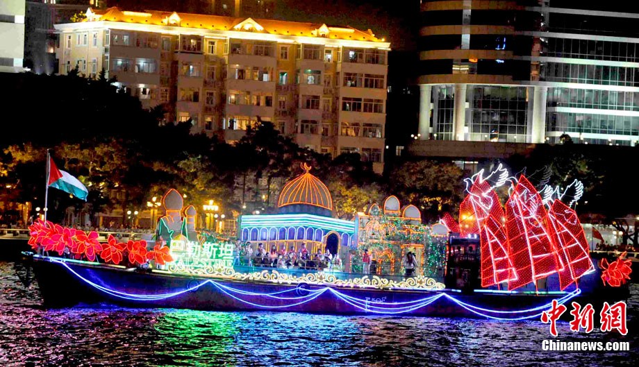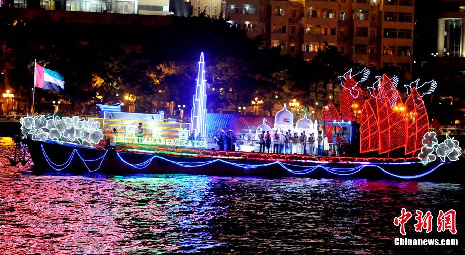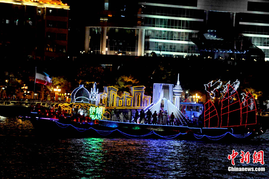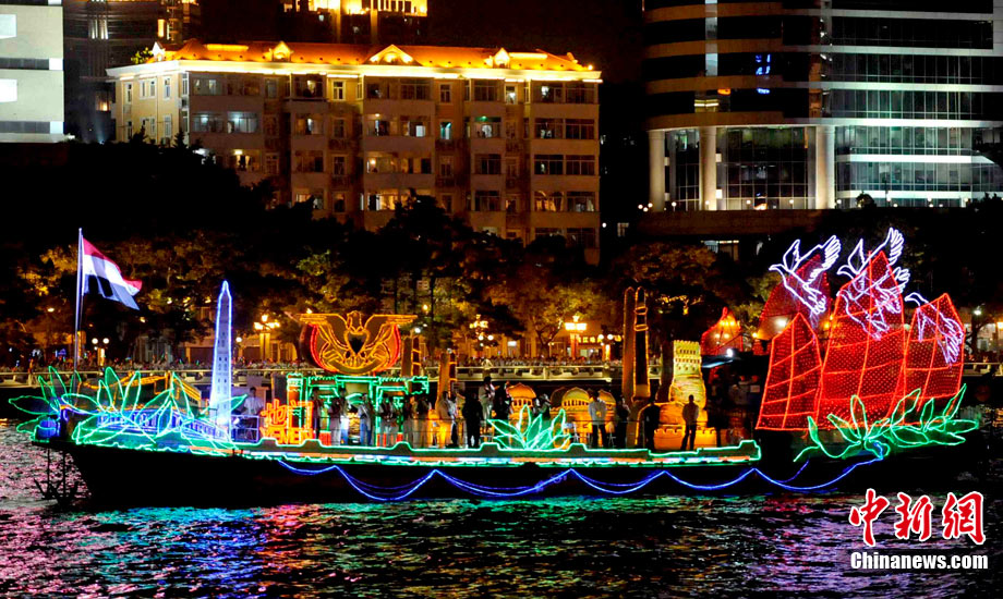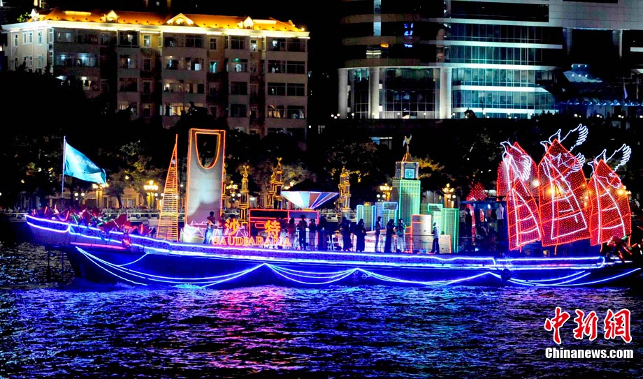11月12日晚,萬眾企盼的2010年廣州亞運(yùn)會在珠江之中海心沙小島上啟航。亞奧理事會的45個(gè)成員全部參賽,再次實(shí)現(xiàn)亞奧理事會大家庭的大團(tuán)圓;ù灿问菑V州亞運(yùn)會開幕式的一大創(chuàng)舉。每艘花船都經(jīng)過精心的設(shè)計(jì)與裝扮,以亞洲各個(gè)國家和地區(qū)最具特色的名勝古跡為原型的造型成為花船的“身份標(biāo)志”。