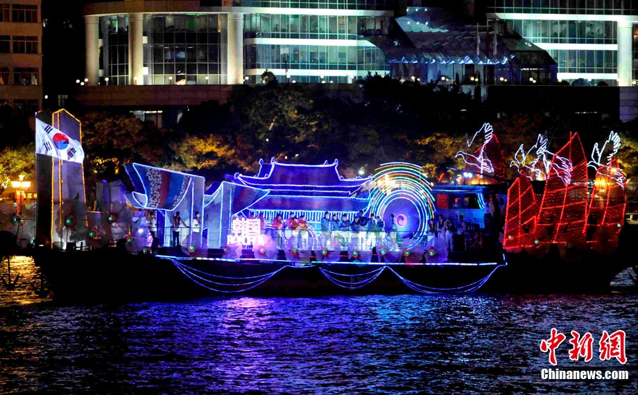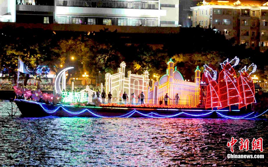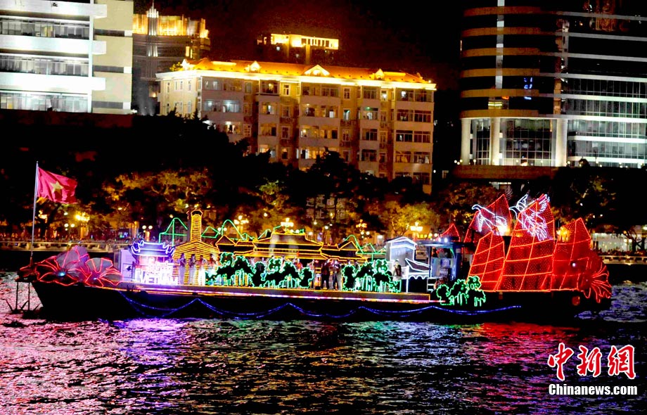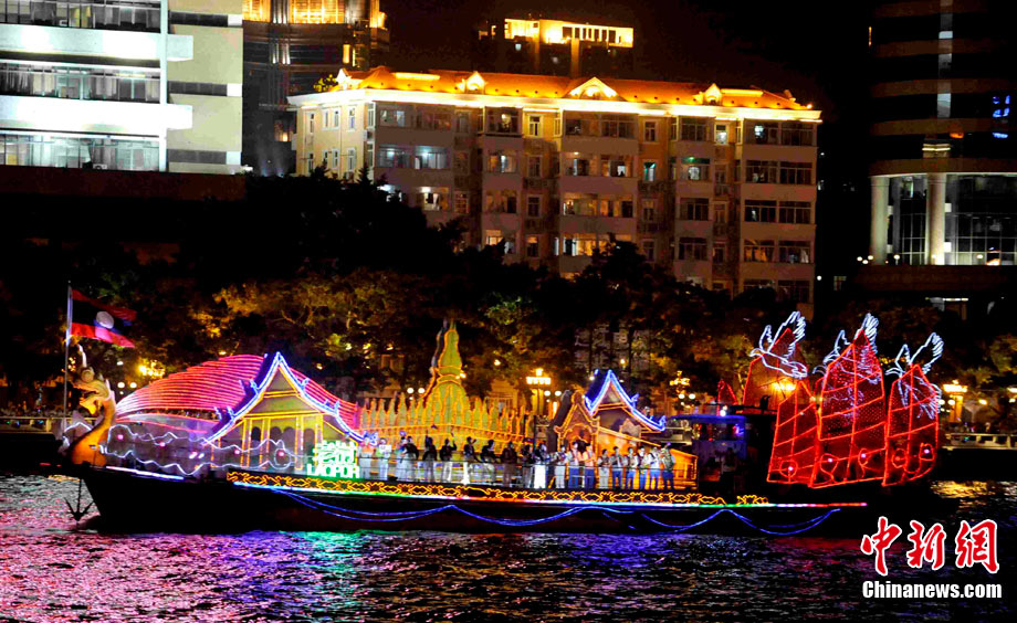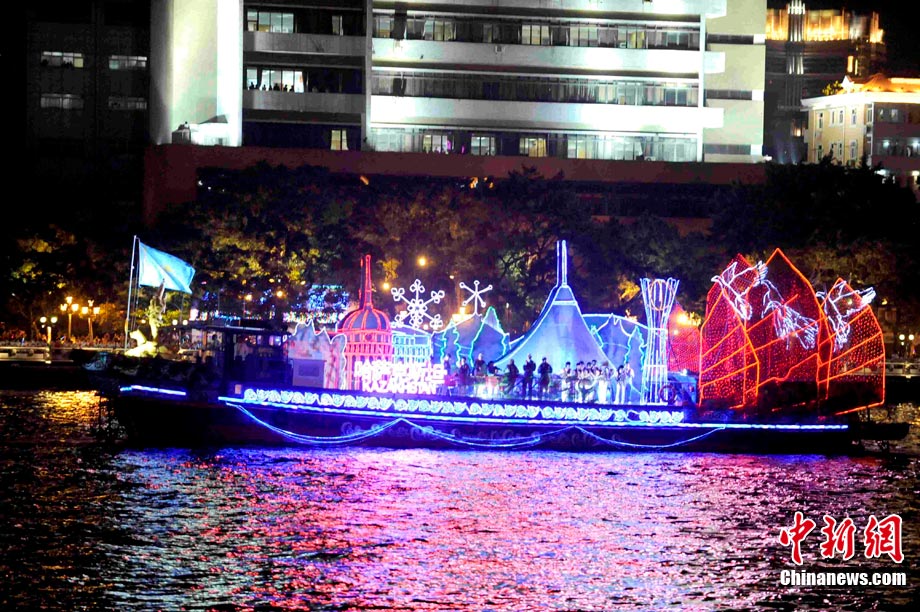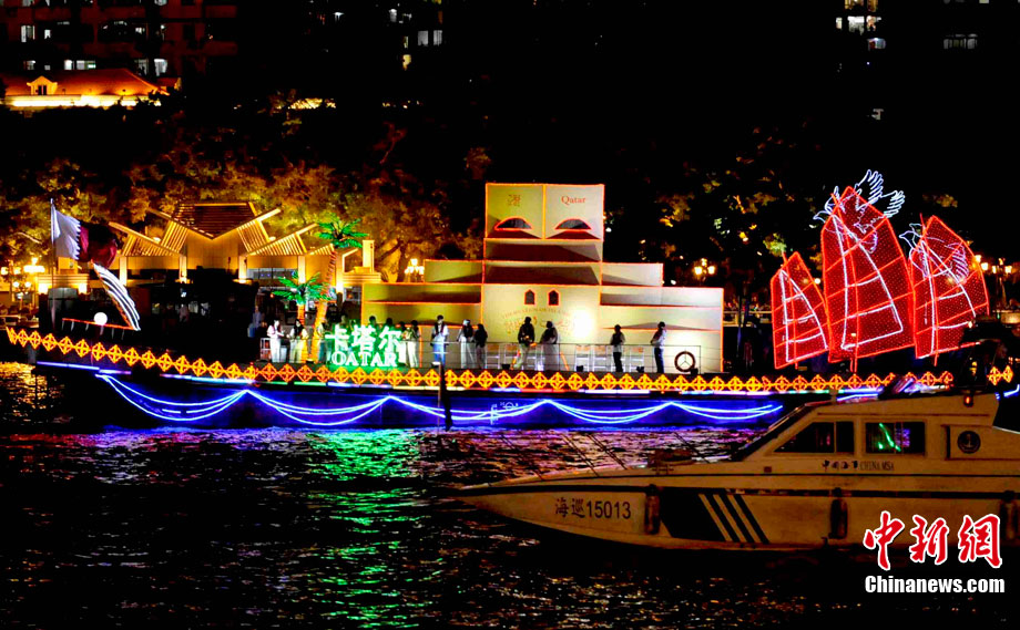 11月12日晚,萬眾企盼的2010年廣州亞運(yùn)會在珠江之中海心沙小島上啟航。亞奧理事會的45個(gè)成員全部參賽,再次實(shí)現(xiàn)亞奧理事會大家庭的大團(tuán)圓;ù灿问菑V州亞運(yùn)會開幕式的一大創(chuàng)舉。每艘花船都經(jīng)過精心的設(shè)計(jì)與裝扮,以亞洲各個(gè)國家和地區(qū)最具特色的名勝古跡為原型的造型成為花船的“身份標(biāo)志”。