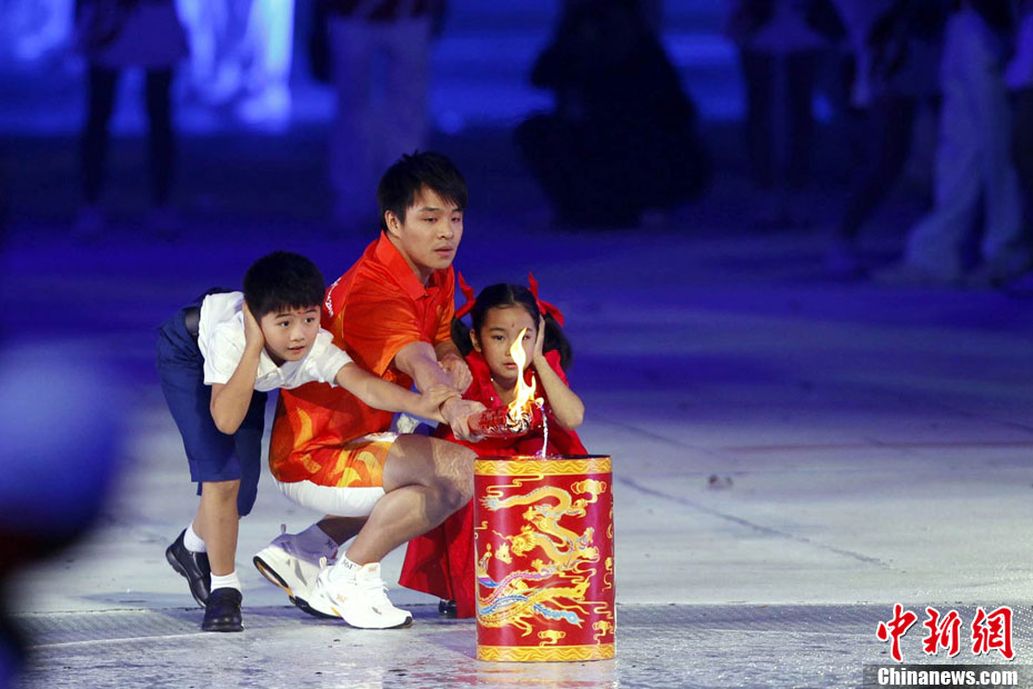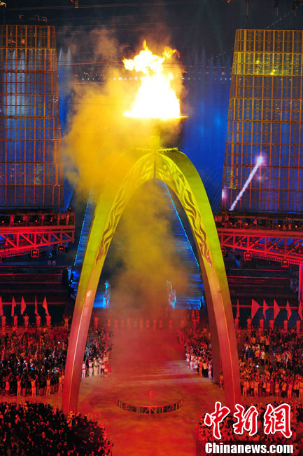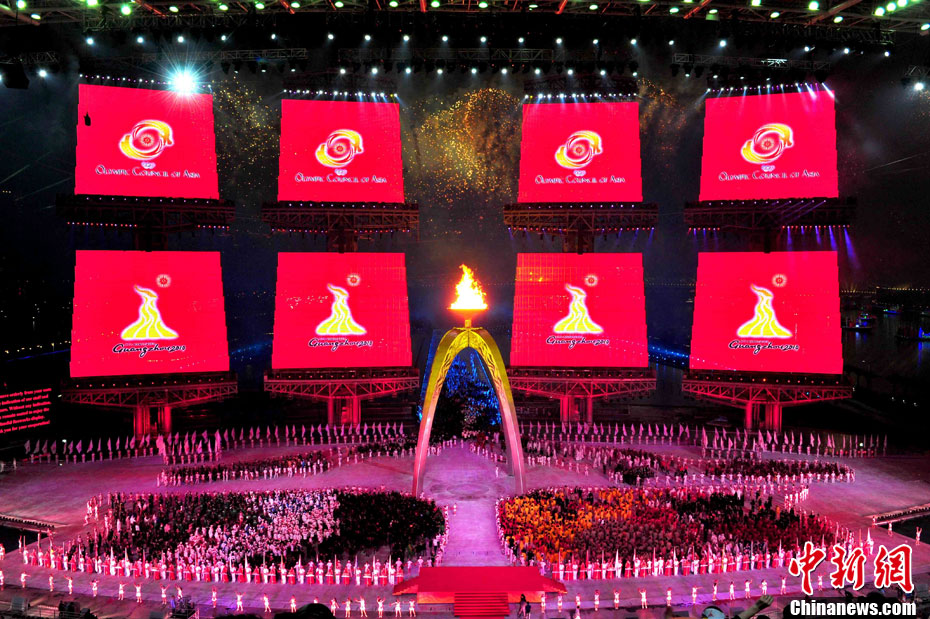 第16屆亞運會11月12日晚在廣州開幕,圖為亞運會主火炬點燃。中新社記者 湯彥俊 攝