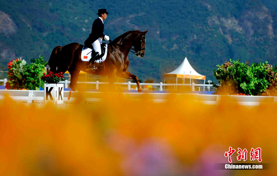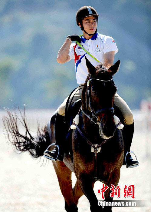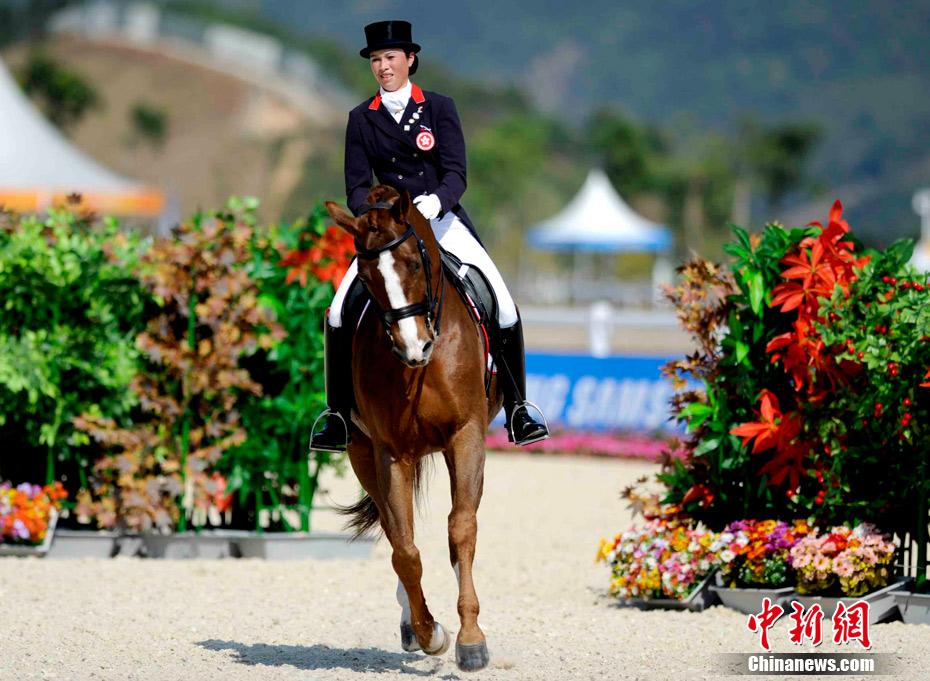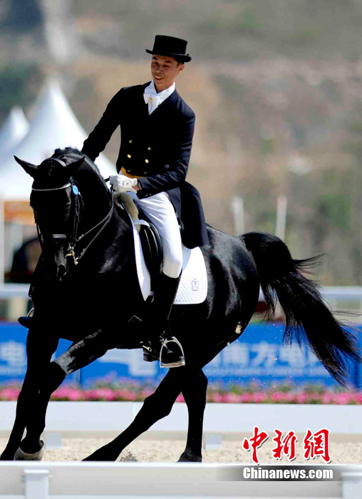 11月14日,廣州亞運(yùn)馬術(shù)比賽在廣州馬術(shù)場舉行,這個(gè)號稱亞運(yùn)最昂貴的比賽項(xiàng)目上駿馬、美女、帥哥齊全,據(jù)悉,比賽中的馬匹最少都要幾百萬人民幣,有的更高達(dá)幾千萬,參賽選手也云集了阿拉伯國家的皇室貴族和富豪。中新社記者 王東明 攝