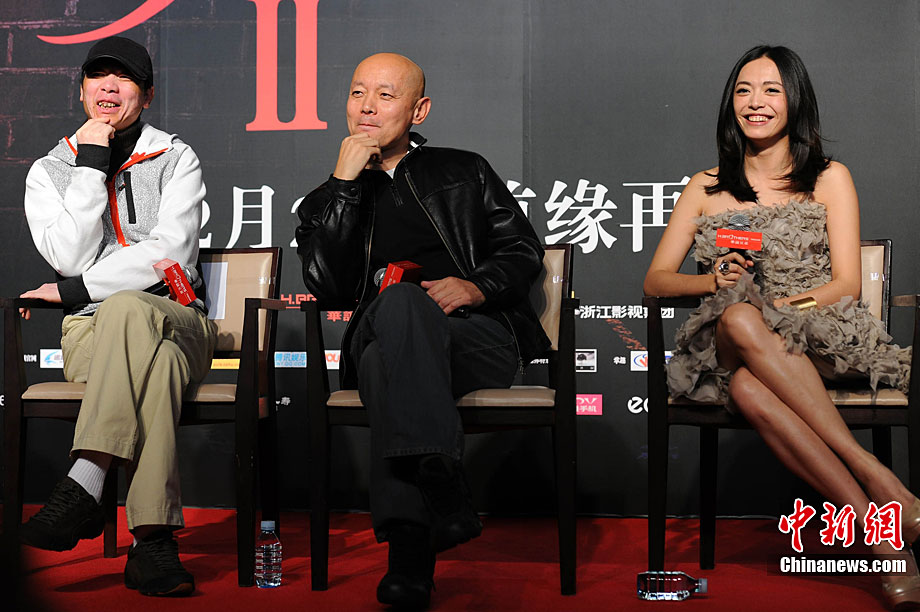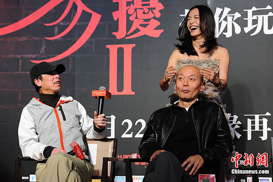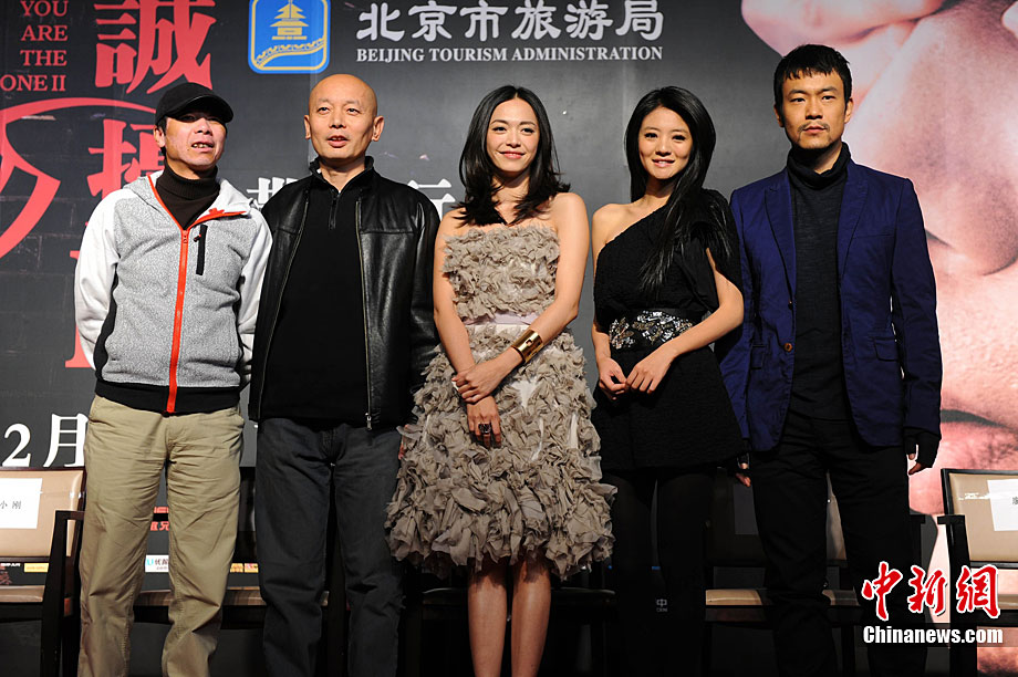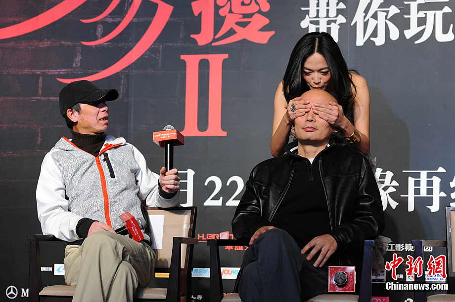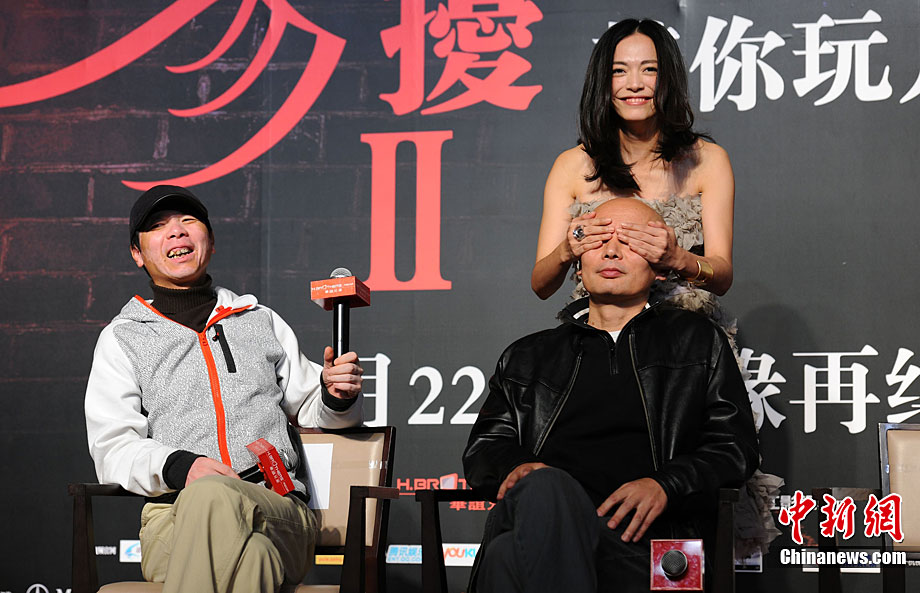 11月14日,將于12月22日賀歲上映的《非誠勿擾2》在北京舉行發(fā)布會,發(fā)布電影的美景花絮,并隆重介紹本次影片與北京市旅游局的合作。發(fā)布會上,除主演葛優(yōu)外,姚晨、安以軒、廖凡、邵兵并未參演前作《非誠勿擾》的拍攝,這也是續(xù)集新成員的第一次集體亮相。發(fā)布會上馮小剛導(dǎo)演證實,“《非誠勿擾2》海報上蒙葛優(yōu)眼睛的手是姚晨的。”現(xiàn)場媒體要求姚晨與葛優(yōu)情景重現(xiàn),盡管姚晨笑說,她跟舒淇是好姐妹,不能在人不在的時候占秦奮便宜。但還是難以抵擋眾人要求盛情難卻,現(xiàn)場蒙住了葛優(yōu)雙眼并送上香吻,葛優(yōu)事后享受地說“不錯”。中新社記者 李學(xué)仕 攝