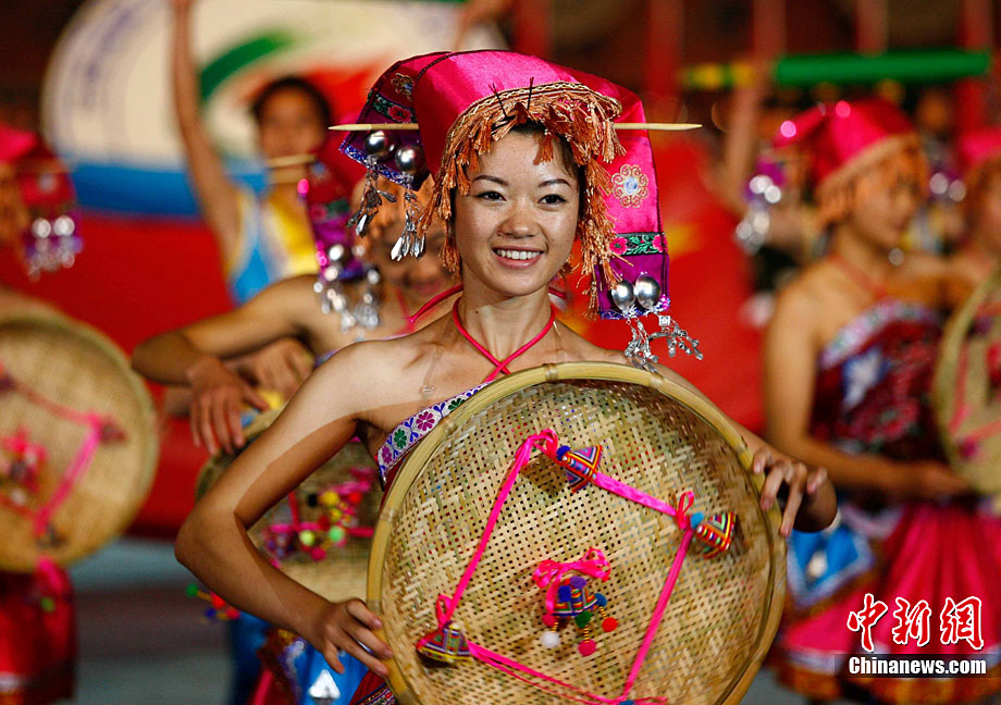 11月16日晚,云南省第九屆少數(shù)民族傳統(tǒng)運(yùn)動(dòng)會(huì)在云南省普洱市開幕。云南是一個(gè)多民族的邊疆省份,來源于生活的民族傳統(tǒng)體育歷史悠久,特色鮮明,深受各族人民的喜愛。圖為佤族舞者精彩的表演吸引觀眾的目光。中新社記者 劉冉陽 攝