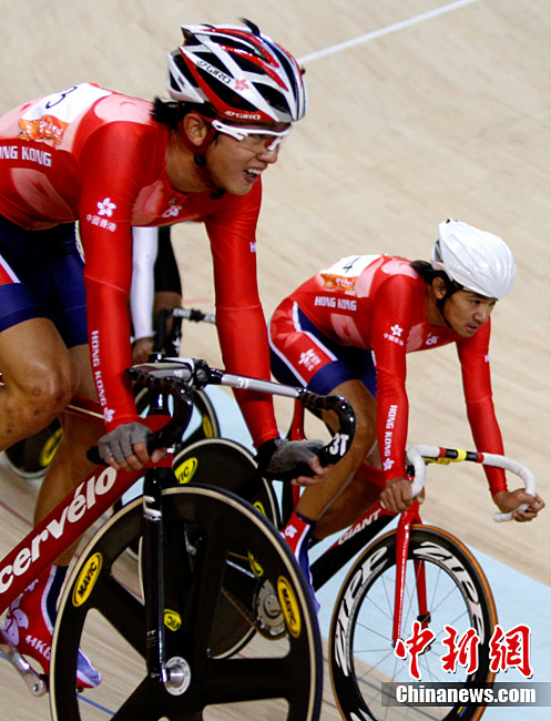 第十六屆廣州亞運(yùn)會(huì)11月17日進(jìn)行了場地自行車男子30公里記分賽,中國香港選手黃金寶奪得亞軍。中新社記者 趙振清 攝