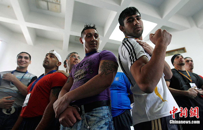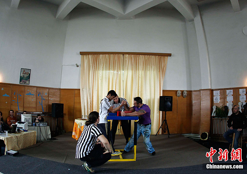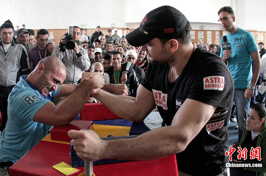 當(dāng)?shù)貢r(shí)間11月18日,羅馬尼亞首都布加勒斯特的監(jiān)獄舉行了掰手腕大賽。90公斤級(jí)世界掰手腕世界冠軍Ion Oncescu也親臨現(xiàn)場(chǎng)。