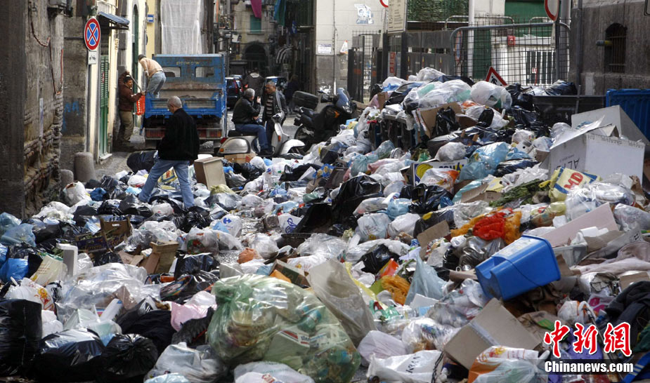 11月22日,意大利“垃圾危機(jī)”扔在持續(xù),那不勒斯街道垃圾成患。意大利政府打算在位于那不勒斯東南大約20公里的泰爾齊尼奧鎮(zhèn)新建一座垃圾處理場(chǎng),以解決那里的垃圾問(wèn)題。