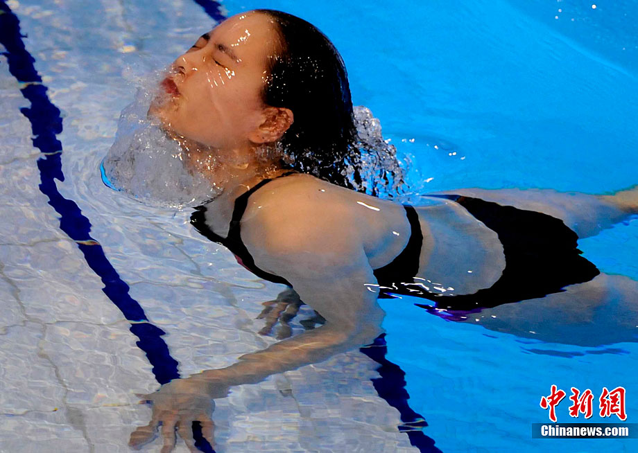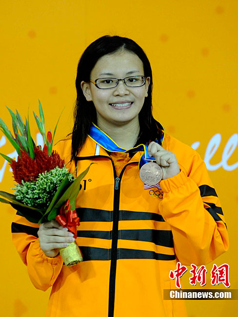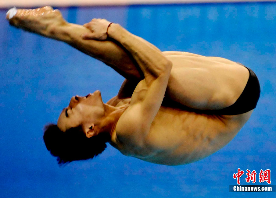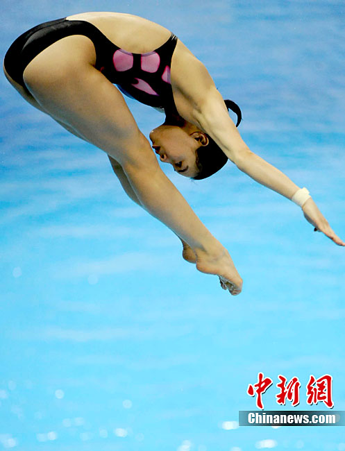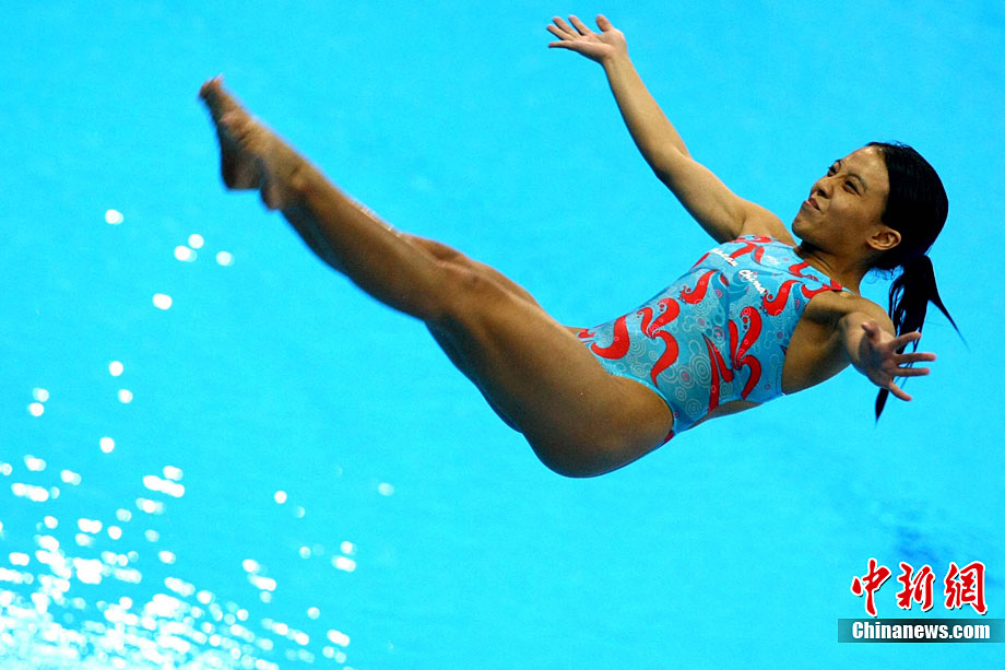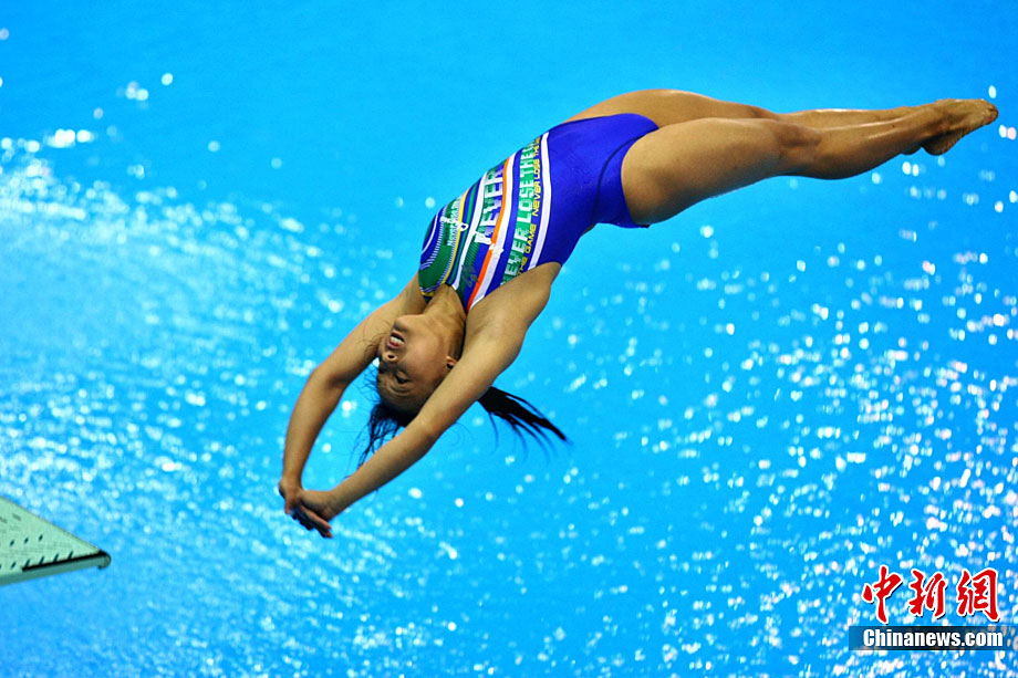 11月24日,廣州亞運(yùn)會(huì)跳水項(xiàng)目女子1米跳板決賽在奧體游泳館舉行,中國(guó)選手吳敏霞以326.15分奪得金牌。中新社記者 王東明 攝