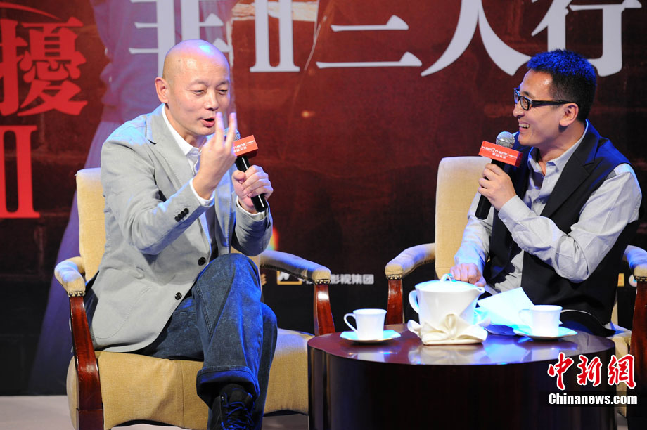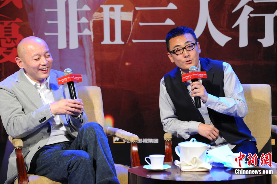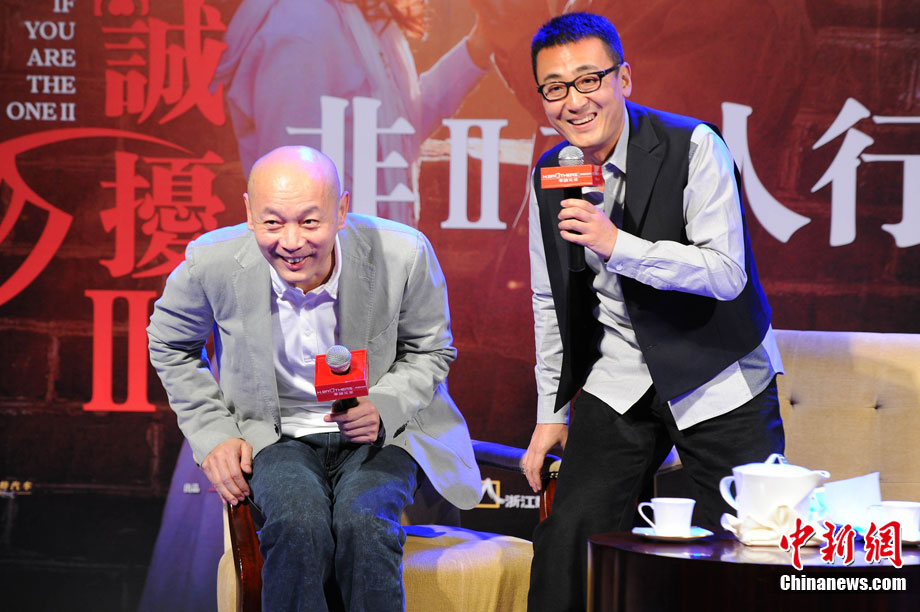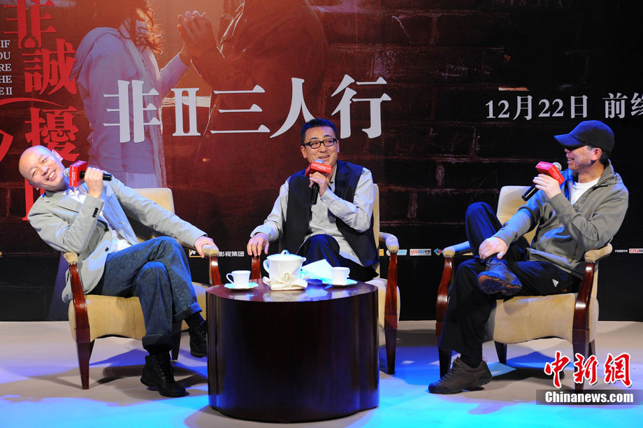 由華誼兄弟出品、馮小剛導(dǎo)演、王朔與馮小剛聯(lián)合編劇的《非誠勿擾2》將于12月22日賀歲上映。11月24日,《非誠勿擾2》舉行了“《非2》三人行”發(fā)布會,正式發(fā)布《非誠勿擾2》升級版幕后花絮,馮小剛、葛優(yōu)、竇文濤組成三人行搭檔。在竇文濤的幽默調(diào)侃下,葛優(yōu)馮小剛熱聊新戲,笑聲不斷。在當(dāng)場公布的升級篇幕后花絮中,秦奮和梁笑笑的親密戲也出露端倪,葛優(yōu)舒淇在美景中多次深情依偎,一場兩人在床上的鏡頭更令人期待。馮小剛承認(rèn),“是多了一些親密戲,但都是幽默的處理!备饍(yōu)也謙虛表示,自己演親密戲其實(shí)并不拿手。中新社記者 李學(xué)仕 攝