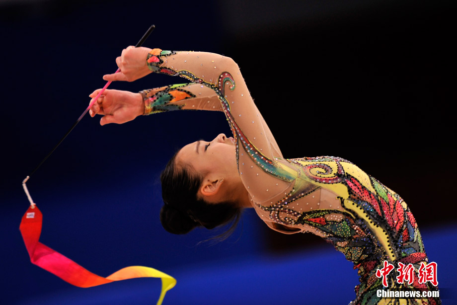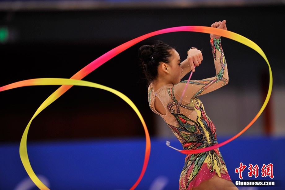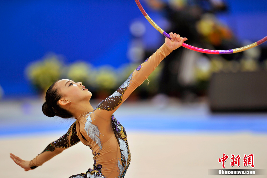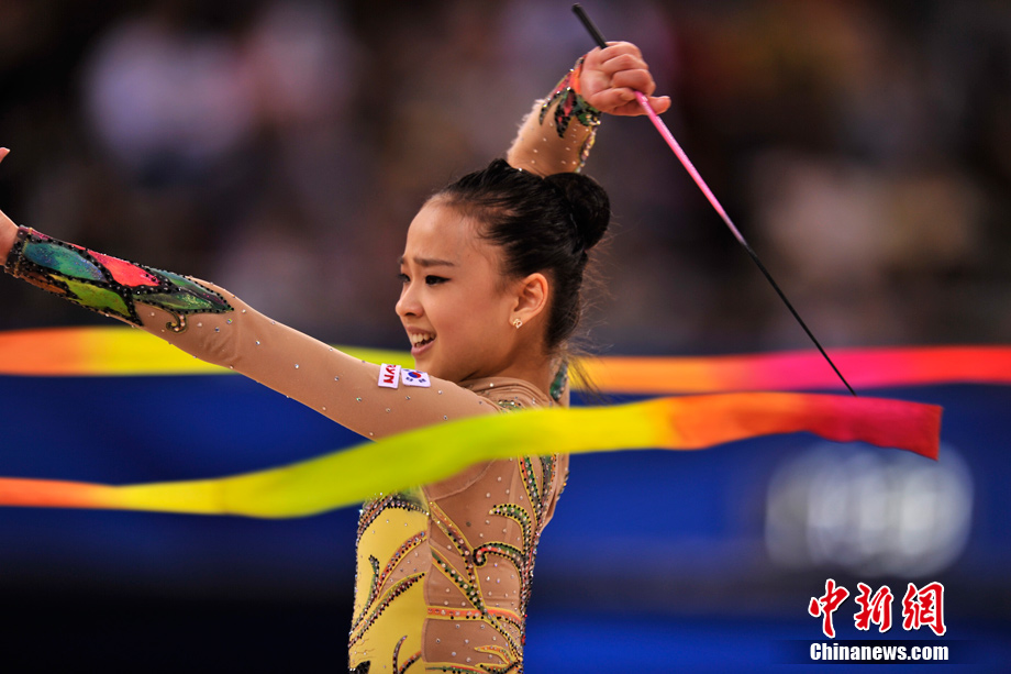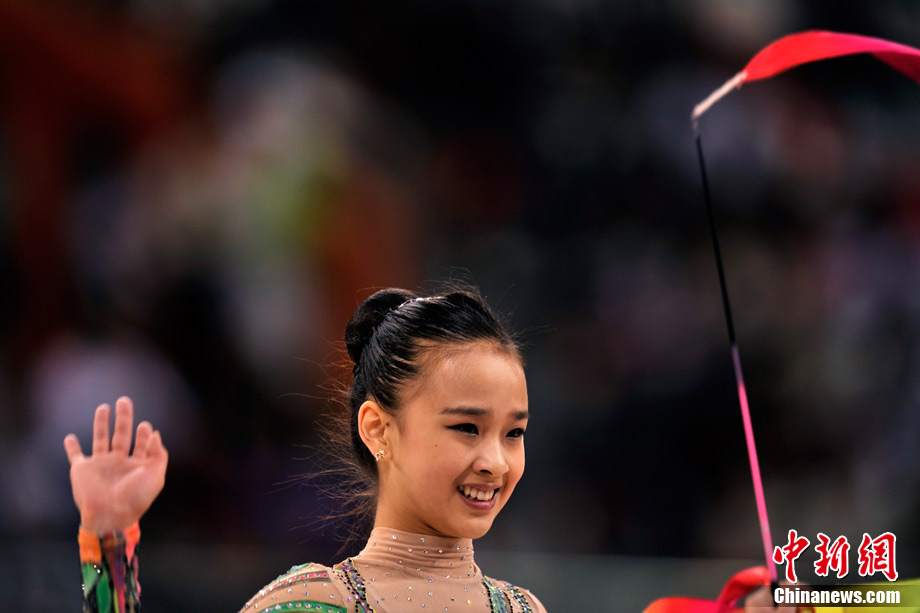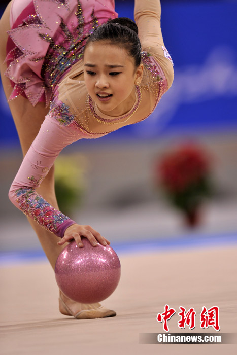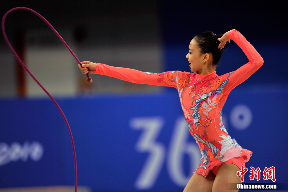 蘿莉,英文名為LOLI,本意指12歲以下的小女孩,后泛指天真可愛的小女生。15歲的韓國藝術(shù)體操選手孫妍在,憑借著修長的身材、姣好的面容,以及明亮的眼眸,一直被人稱為“藝術(shù)體操屆的金妍兒”。堪稱廣州亞運(yùn)會(huì)“小蘿莉”中的NO.1。圖為孫妍在在亞運(yùn)藝術(shù)體操比賽首日的精彩表現(xiàn)。中新網(wǎng)記者 金碩 攝