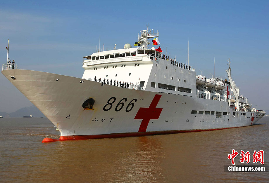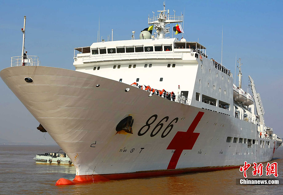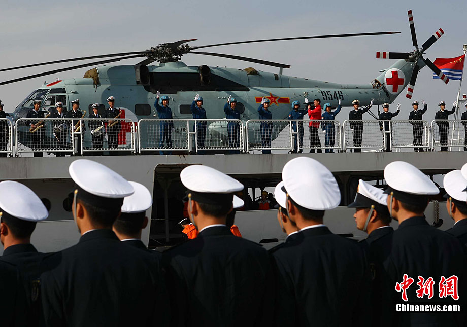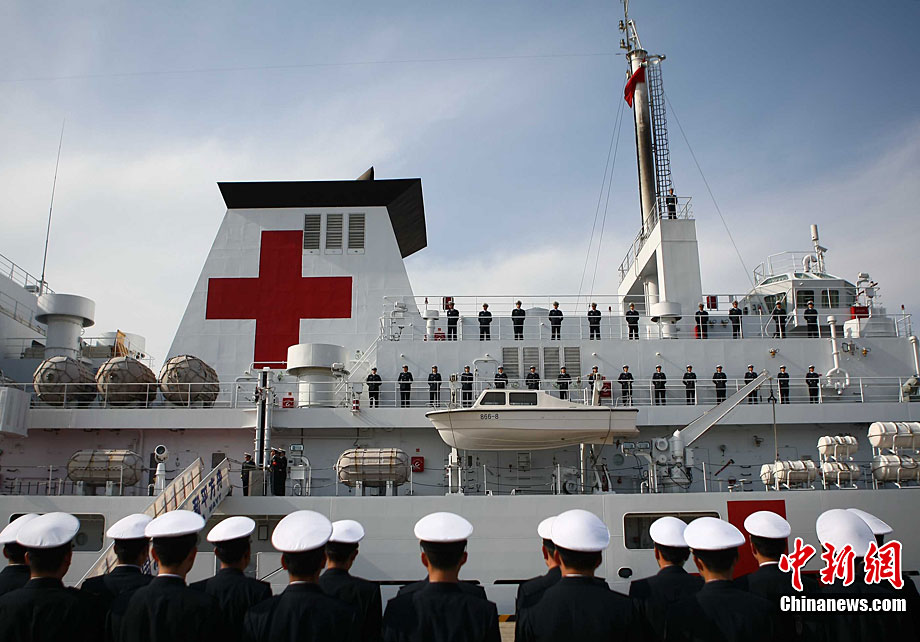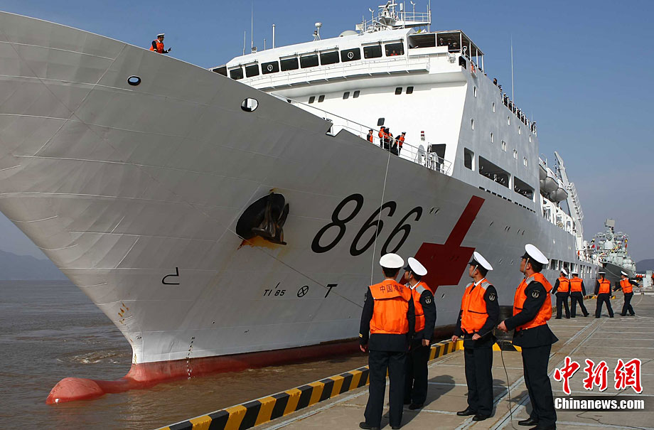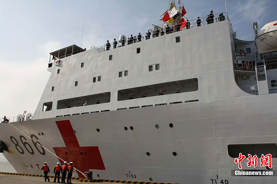 11月26日上午10時(shí),中國(guó)海軍萬噸級(jí)醫(yī)院船“和平方舟”安全駛抵舟山軍港,這支歷時(shí)88天、航程17800海里的海上醫(yī)療隊(duì)、為海軍護(hù)航官兵和吉布提、肯尼亞、坦桑尼亞、塞舌爾和孟加拉等國(guó)民眾體檢2127人,門診診治12806人、醫(yī)療巡診1858人,輔助檢查15537人次,成功實(shí)施手術(shù)97例,贈(zèng)送藥材36類790種。海軍副政委徐建中中將迎接執(zhí)行任務(wù)的官兵歸來。宋吉河 攝
