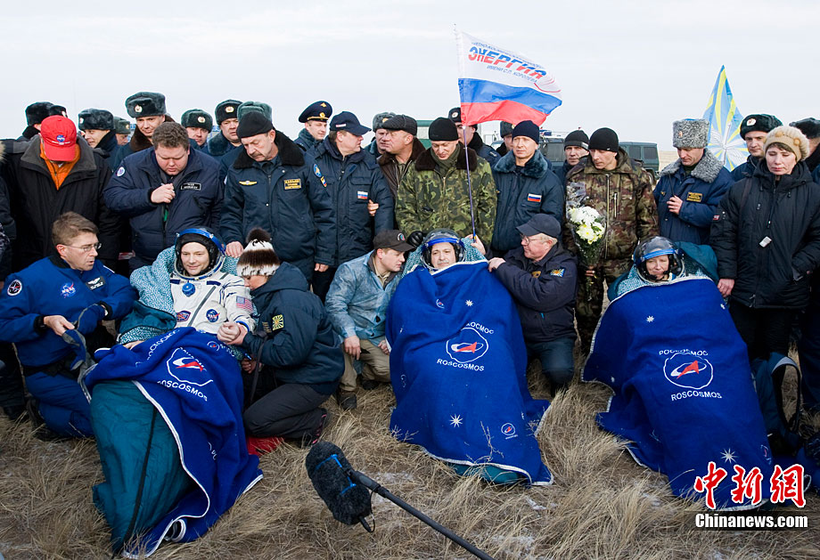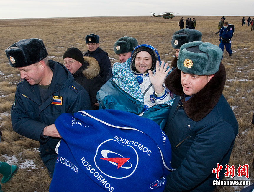 俄羅斯地面飛行控制中心當?shù)貢r間11月26日宣布,國際空間站的3名宇航員已于當日清晨乘俄“聯(lián)盟TMA-19”載人飛船安全返回地球。在國際空間站內(nèi)工作了162天的俄羅斯宇航員尤爾齊欣、美國宇航員維洛克和沃克爾乘坐“聯(lián)盟TMA-19”載人飛船,平安降落在哈薩克斯坦阿爾卡雷克市以北的草原上,3名宇航員目前狀態(tài)良好。