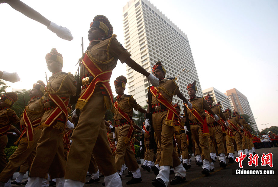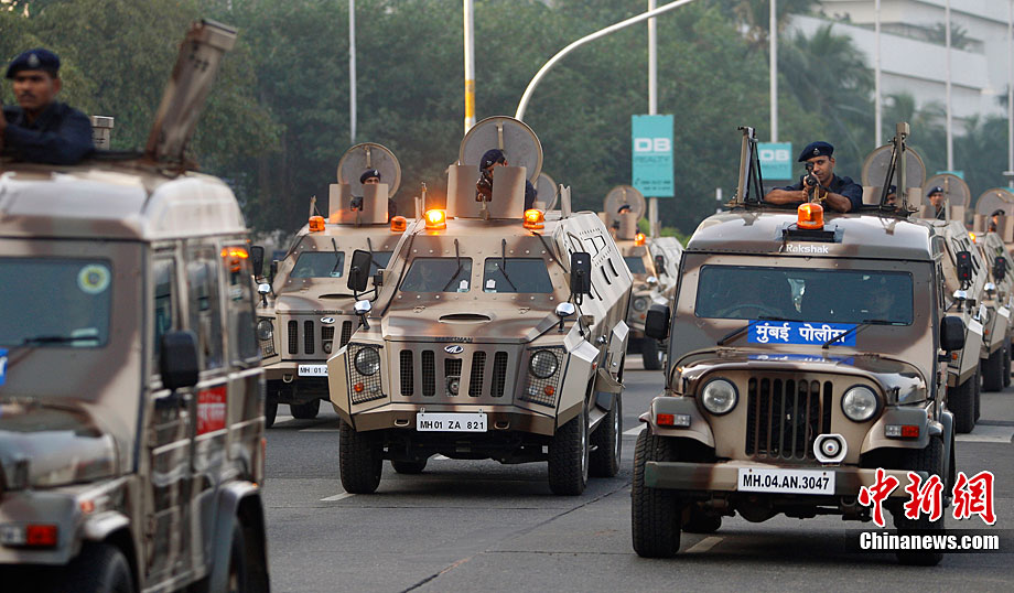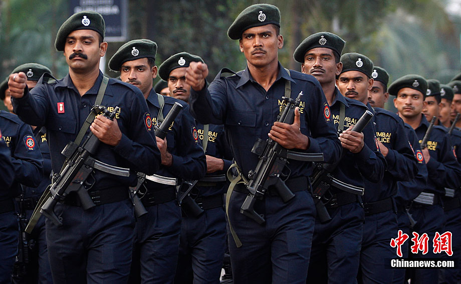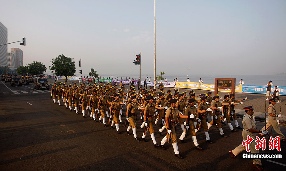11月26日,警察在印度孟買的海濱大道上舉行閱兵式,悼念恐怖襲擊事件中的遇難者并表達(dá)反恐決心。2008年11月26日夜至29日,印度商業(yè)中心孟買的泰姬馬哈酒店、奧貝羅伊酒店、猶太人中心以及孟買火車站等地遭遇連環(huán)恐怖襲擊,造成至少195人死亡,大約300人受傷。