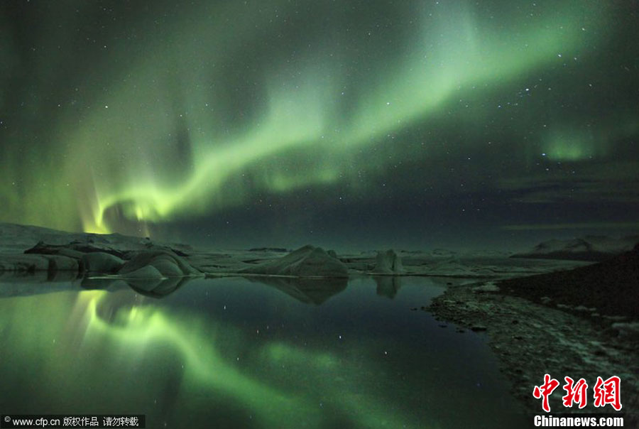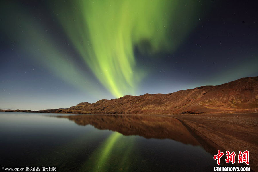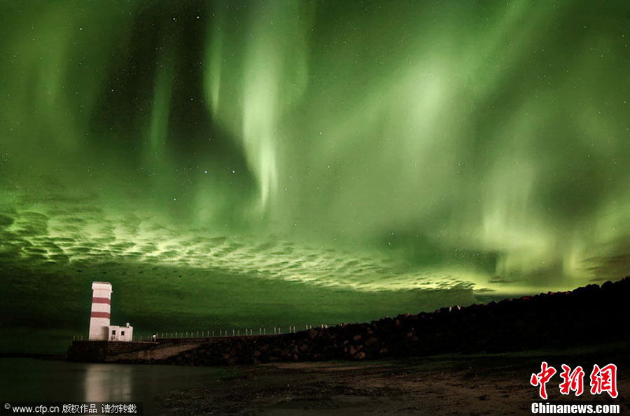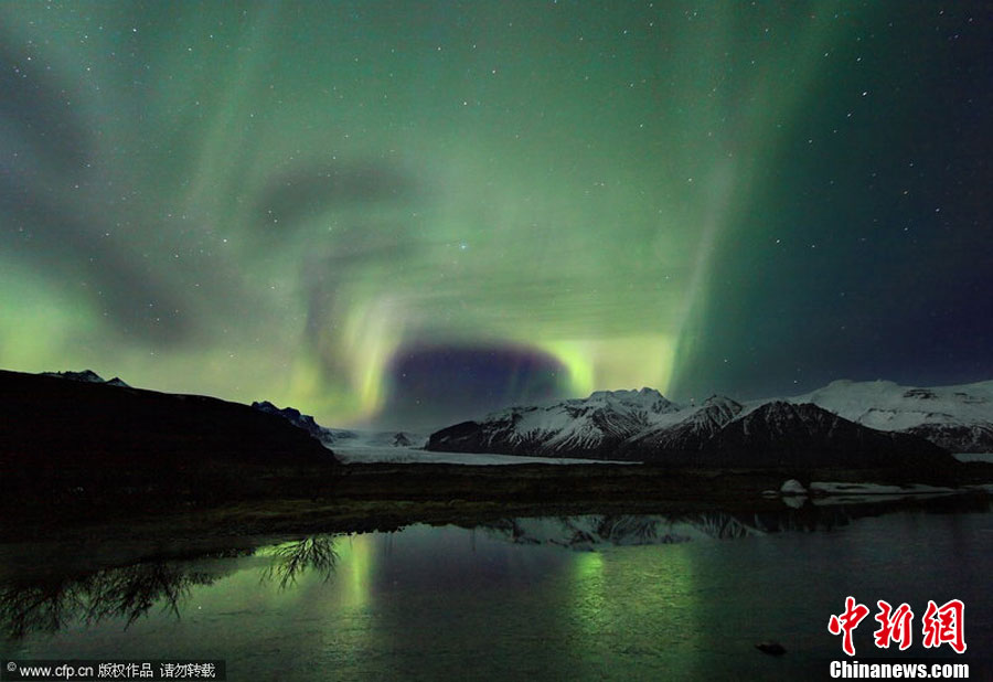 2010年11月,冰島攝影師Orvar Thorgiersson拍攝的美麗北極光。北極光一般遵循持續(xù)11年的“太陽活動周期”,在這個周期內(nèi),北極光出現(xiàn)頻率先是達到一個峰值,接著逐漸減少,直至最低谷。這是一個不斷循環(huán)往復(fù)的過程。有研究稱,北極光至2012年將達到一個周期的峰值,Orvar Thorgiersson用鏡頭記錄下2007年至今的北極光變化過程。barcroftmedia 圖片來源:CFP視覺中國