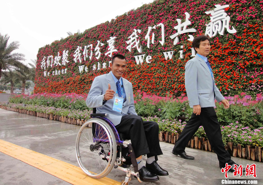 2010廣州亞殘運會將于12月12日晚開幕,本屆運動會吉祥物“芬芬”怡人可愛。 “芬芬”意即花之芬芳,清香襲人,五片舞動的花瓣、一張燦爛的笑臉,體現(xiàn)出參與者的歡樂,寓于運動的殘奧理念。