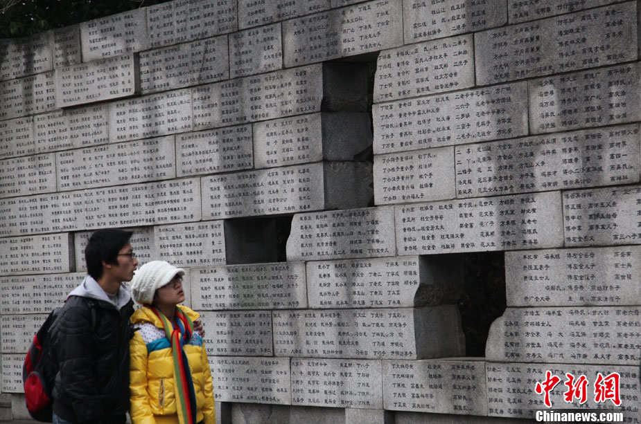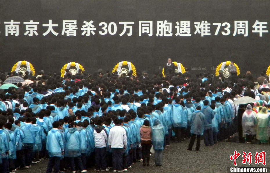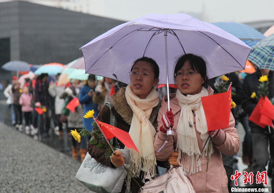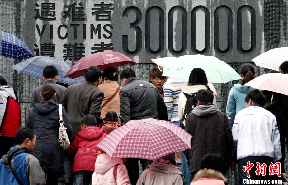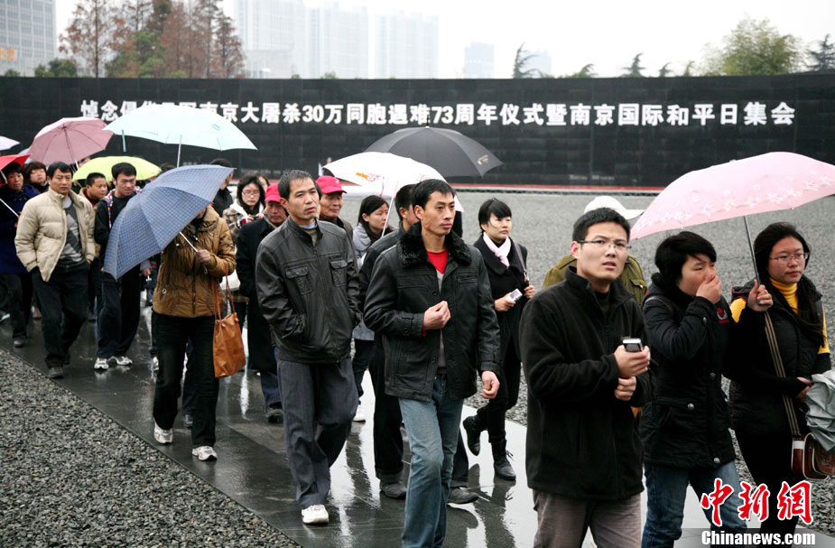12月13日是南京大屠殺遇難同胞73周年祭日,12日起,江蘇南京將舉行和平集會(huì)、和平法會(huì)等系列活動(dòng),悼念30萬(wàn)遇難同胞。圖為南京市民12日冒雨前往南京大屠殺遇難同胞紀(jì)念館悼念。 鐘山 攝 圖片來(lái)源:CNSPHOTO