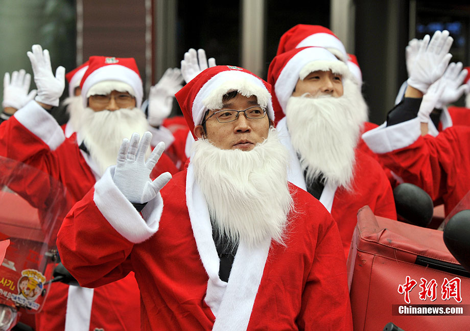 當(dāng)?shù)貢r間12月13日,韓國首爾中央郵局舉行“圣誕老人 愛的信使”儀式。郵遞員變身“圣誕老人”送郵件,迎接圣誕節(jié)的到來。