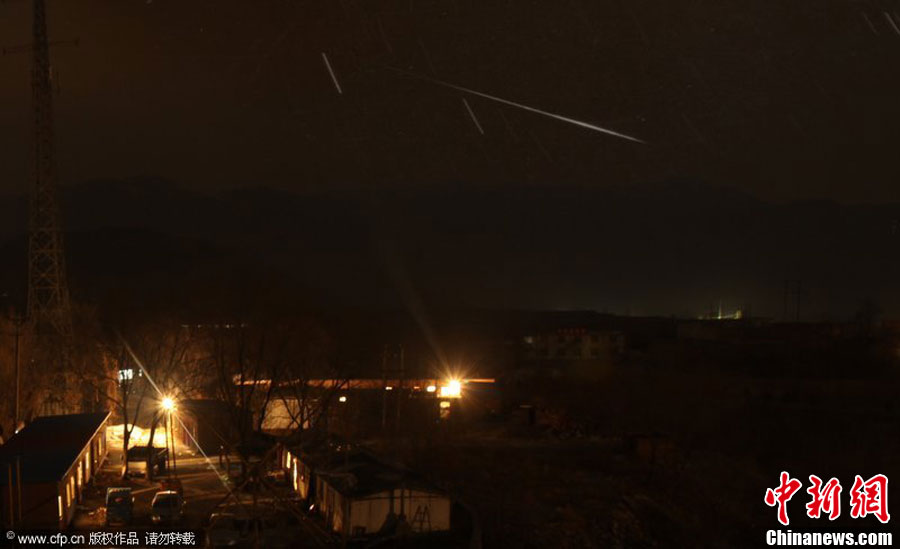 臨近歲末,雙子座流星雨如期而至。12月14日19時(shí),雙子座流星雨達(dá)到極大,每小時(shí)流星量達(dá)120顆。圖為山東青島棧橋景區(qū)上空明亮的流星從雙子星座輻射而出,劃過(guò)城市上空。周昆 攝 圖片來(lái)源:CFP視覺(jué)中國(guó)