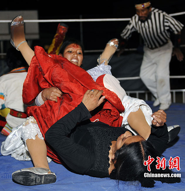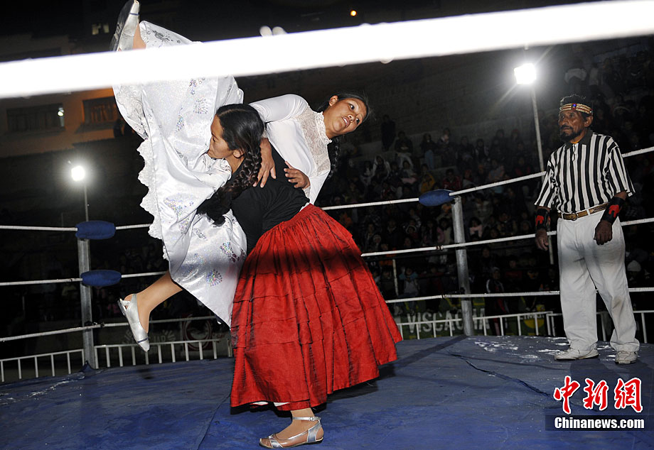 位處南美洲的玻利維亞為了刺激旅游業(yè),每年冬天都會(huì)舉行女子摔角比賽,雖然場(chǎng)地大小與聲光音響效果遠(yuǎn)不及著名的美國(guó)女子摔角聯(lián)盟大賽,不過(guò)緊張刺激的過(guò)程,僅僅一美元的門(mén)票價(jià)格,仍然吸引了不少游客到場(chǎng)觀戰(zhàn)。