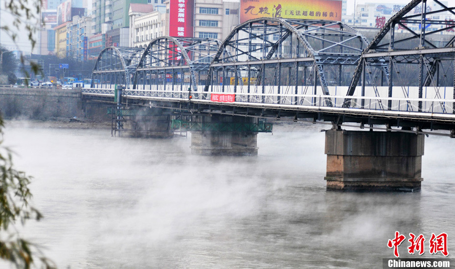 12月16日晨,黃河蘭州段出現(xiàn)河霧景觀。當(dāng)日7時(shí),蘭州市最低氣溫降至零下15℃!钇G敏 攝