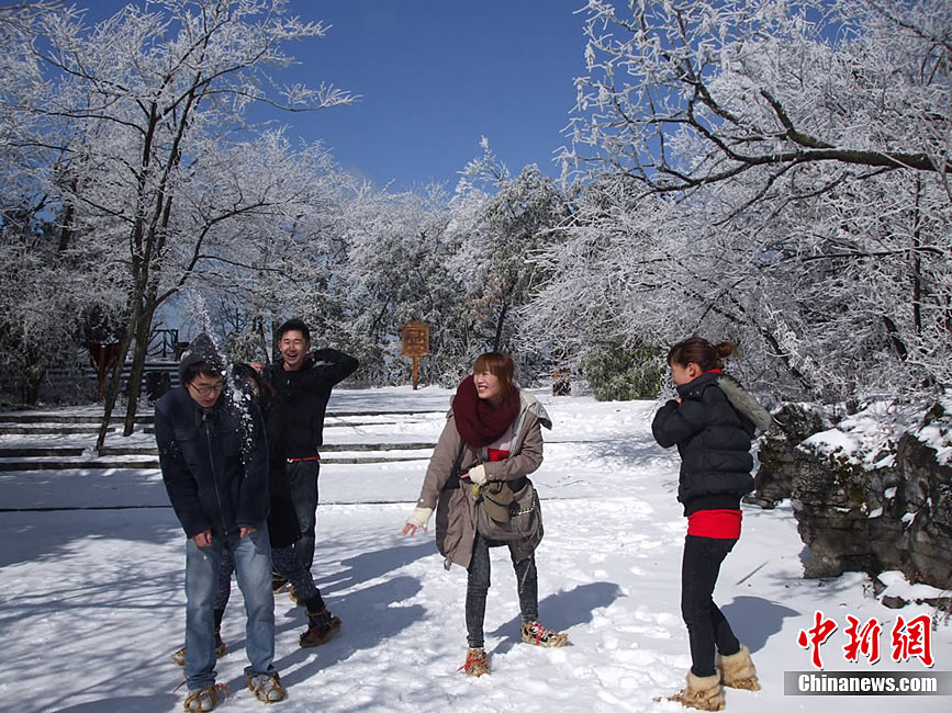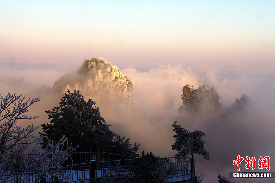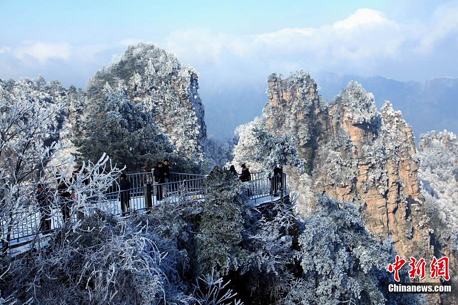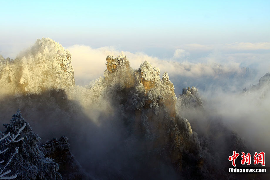 12月16日,世界自然遺產(chǎn)張家界雪后放晴,天子山、黃石寨等景點(diǎn)出現(xiàn)美輪美奐的云海奇觀。白雪覆蓋的石英砂巖峰林,在云蒸霞蔚之間更顯色彩斑斕,恍若仙境,令海內(nèi)外游客無(wú)不陶醉其中。王傳殊 鄧道理 攝
