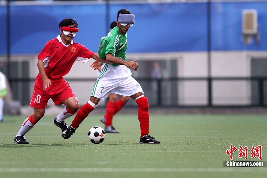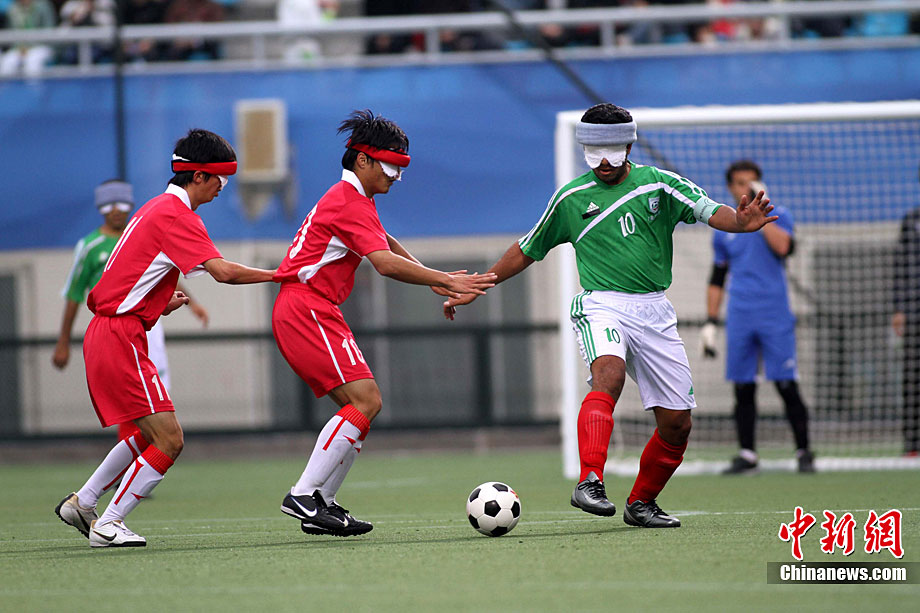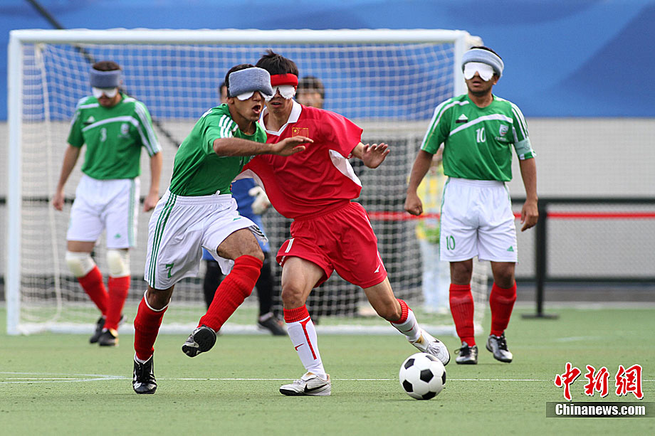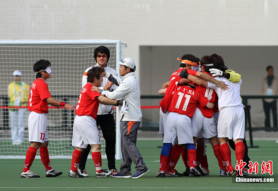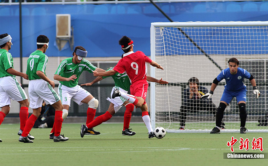 12月18日,亞殘運(yùn)會(huì)廣州奧林匹克體育中心,在五人制(男子)足球決賽中,中國隊(duì)與伊朗隊(duì)的選手們充分發(fā)揮運(yùn)動(dòng)員的拼搏精神。經(jīng)過激戰(zhàn),中國隊(duì)最后以1:0的成績戰(zhàn)勝伊朗獲得金牌。張美安 攝