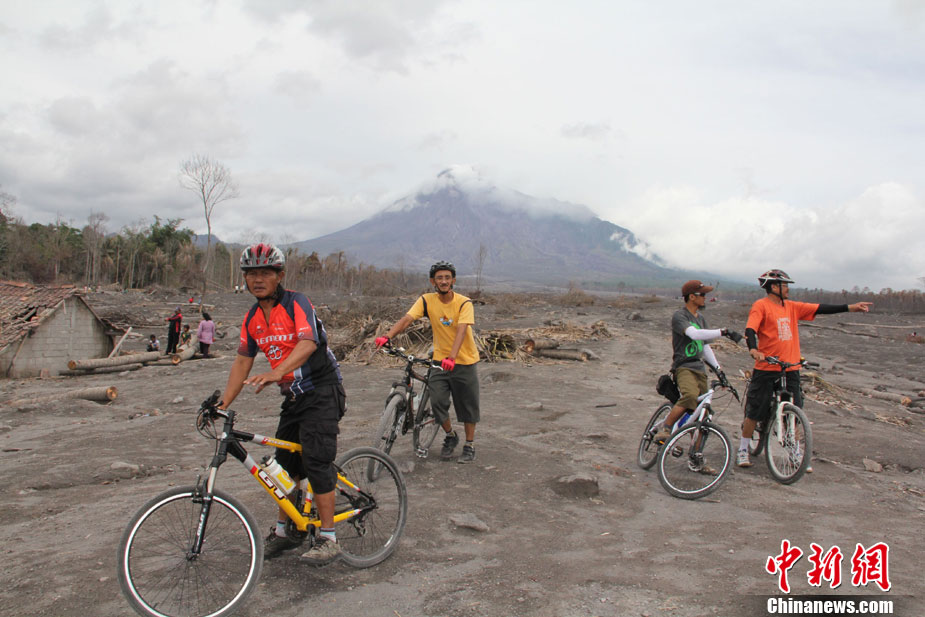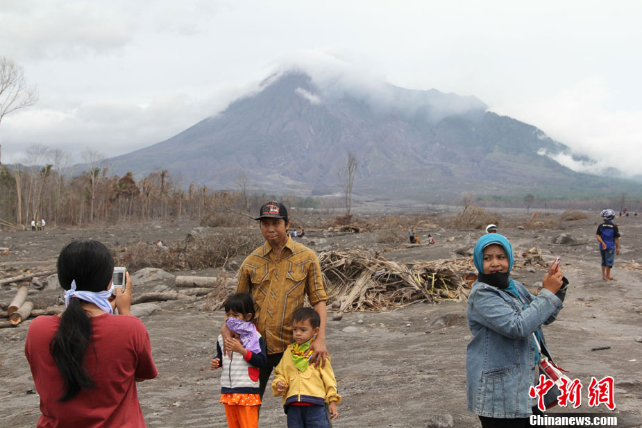 今年10月下旬,位于印尼日惹市的默拉皮火山在沉睡百年后,再次大規(guī)模數(shù)次噴發(fā),并造成300多人罹難、成千上萬人受傷,數(shù)十萬人撤離家園。默拉皮火山11月份停止噴發(fā)后,來自印尼各地的民眾紛紛來此旅游觀光;鹕侥_下一個叫GUNGAND被火山巖漿埋沒的村莊,每天來旅游的人數(shù)逾5000人。圖為當?shù)孛癖娫谂恼樟裟睢V行律绨l(fā) 顧時宏 攝