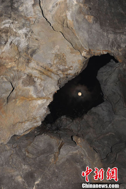 12月22日凌晨,廣東肇慶七星巖“出米洞”景區(qū)冬至日出現(xiàn)“頭上有明月,腳下無暗影”月光垂照山洞的奇趣天文地理景象,吸引了北京、廣州、肇慶三地天文地理氣象科研人員。中國科學(xué)院國家天文臺(tái)研究員張濟(jì)同稱,月亮垂照出米洞奇觀必須符合滿月時(shí)分,冬至日,月亮必須到達(dá)北緯23°08′上空三個(gè)條件。他說,下一次出米洞看月光垂照要等19年,本世紀(jì)100年僅可能看到6次這樣的奇觀。圖為冬至日凌晨的端州出米洞上空的月亮。