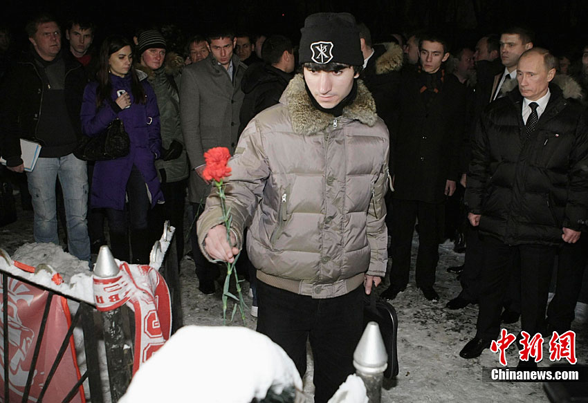 當(dāng)?shù)貢r(shí)間12月21日,俄羅斯總理普京與部分球迷一起,來(lái)到日前被槍殺的莫斯科斯巴達(dá)克足球俱樂(lè)部球迷葉戈?duì)?#183;斯維里多夫的墓前,獻(xiàn)上鮮花表達(dá)哀思。12月5日夜間至6日凌晨,一群斯巴達(dá)克隊(duì)的球迷與一撥來(lái)自北高加索地區(qū)的年輕人在莫斯科北部的喀瑯施塔得林蔭道某汽車站附近發(fā)生斗毆,結(jié)果球迷葉戈?duì)?#183;斯維里多夫被槍殺身亡。
