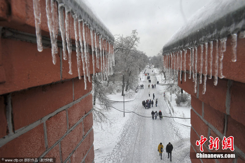2010年12月25日至26日,持續(xù)近1天的凍雨將俄羅斯首都莫斯科變成了一個(gè)“大溜冰場(chǎng)”,給這座大都市帶來(lái)了諸多不便。這一罕見氣候現(xiàn)象從25日下午開始影響莫斯科市。當(dāng)時(shí),天空中開始下起雨,雨滴落到地面后受低溫影響,迅速形成了一層“冰殼”,導(dǎo)致很多道路完全被薄冰覆蓋,非常濕滑。圖片來(lái)源:CFP視覺中國(guó)