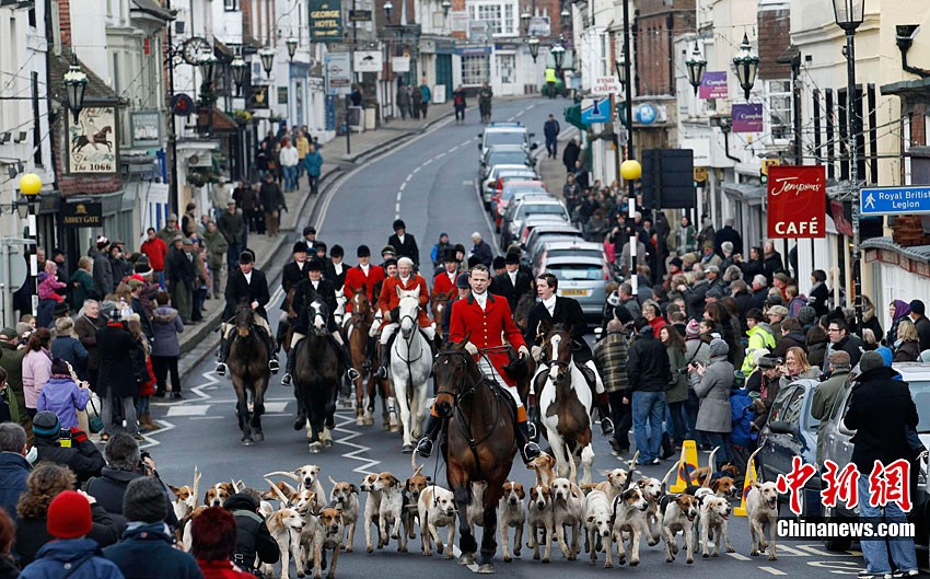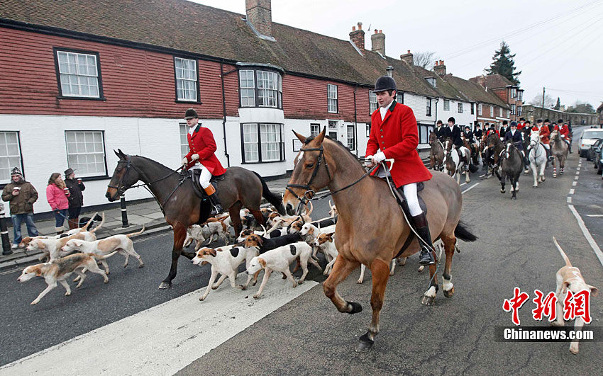當(dāng)?shù)貢r(shí)間12月27日,英格蘭東南部肯特郡舉行了盛大的節(jié)禮日狩獵活動(dòng)開幕式。眾多英國(guó)傳統(tǒng)狩獵愛好者攜帶獵犬參加了這一活動(dòng)。