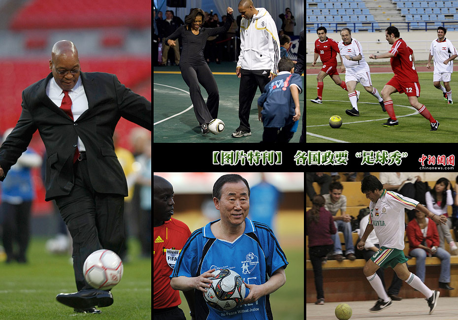作為一項(xiàng)全球運(yùn)動(dòng),足球不單是運(yùn)動(dòng)員的最愛(ài),同時(shí)也受到多國(guó)政要的熱愛(ài)。傳統(tǒng)列強(qiáng)英法德西的政府首腦曾先后在不同場(chǎng)合大秀自己的球技,而作為2010年世界杯東道主南非的總統(tǒng)祖瑪也不例外。