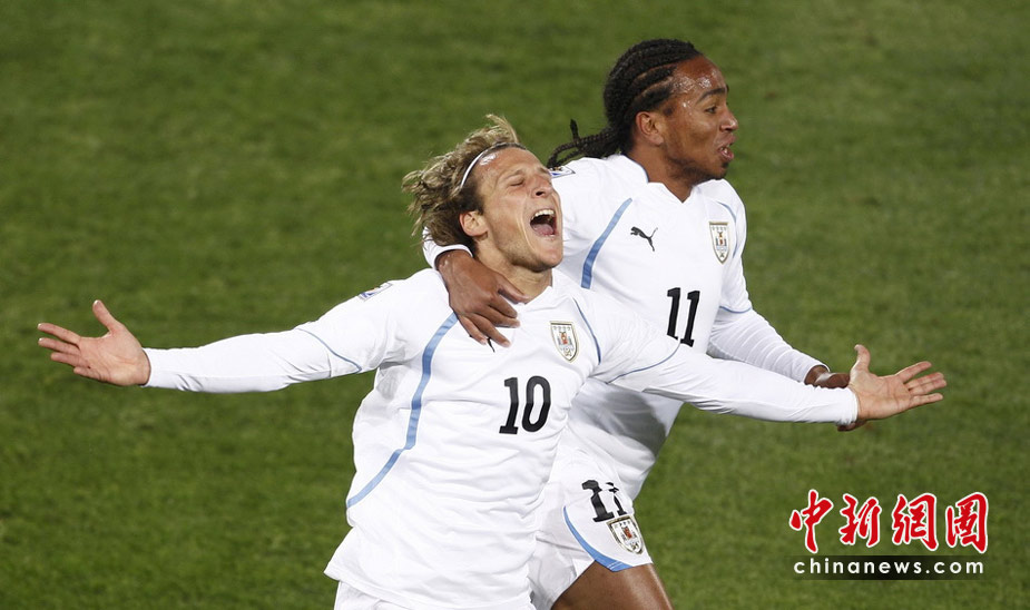 6月17日,世界杯A組第二輪南非迎戰(zhàn)烏拉圭。最終憑借弗蘭的梅開二度和佩雷拉終場(chǎng)補(bǔ)時(shí)的進(jìn)球,烏拉圭隊(duì)以3-0擊敗南非,出線形勢(shì)一片大好。
