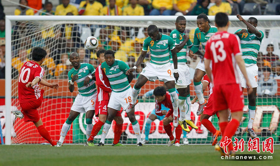 北京時間25日22時,朝鮮隊(duì)迎來自己在南非世界杯的絕唱:在G組的比賽中迎戰(zhàn)科特迪瓦。最終,科特迪瓦隊(duì)3比0擊敗朝鮮隊(duì)。本屆世界杯之旅,朝鮮隊(duì)三戰(zhàn)盡墨,進(jìn)1球失12球,小組墊底。