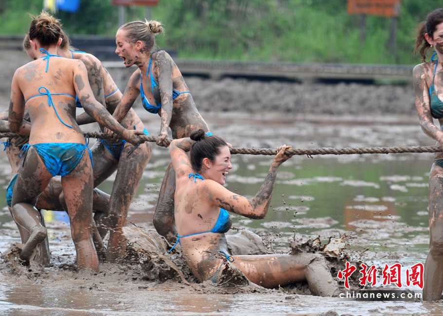 2010年6月28日,2010舟山群島·新絲路國(guó)際海洋小姐大賽在浙江舟山參加秀山滑泥節(jié)。6月24日至7月5日,中國(guó)及澳大利亞、美國(guó)、英國(guó)等近40個(gè)國(guó)家的50名佳麗匯集千島,角逐“2010國(guó)際海洋小姐”稱號(hào)和“美人魚(yú)”大獎(jiǎng)。中新社發(fā) 琳紅 攝