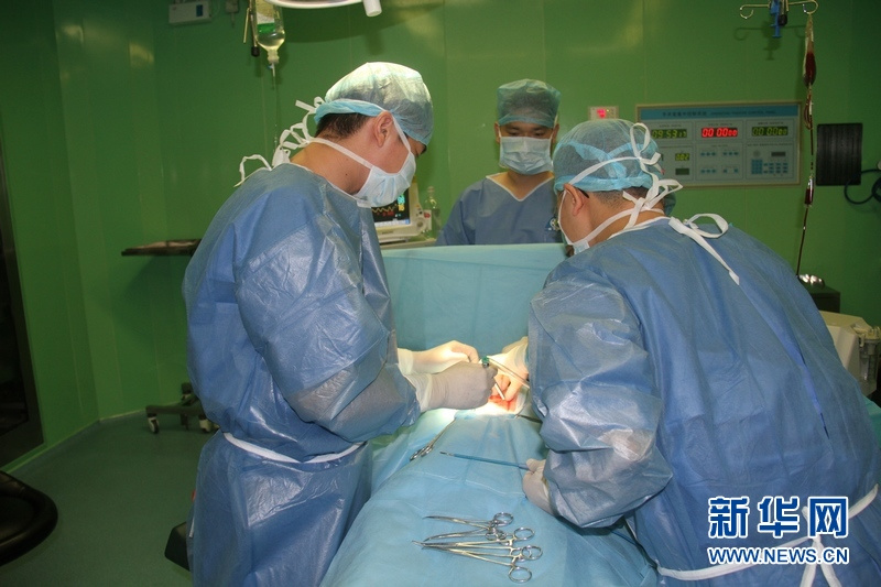 醫(yī)護(hù)人員對“傷員”進(jìn)行“手術(shù)”治療。王經(jīng)國 攝 圖片來源:新華網(wǎng)