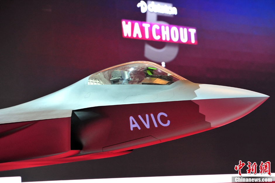 11月13日上午,第九屆中國國際航空航天博覽會在廣東珠海開幕,一架中國先進(jìn)戰(zhàn)斗機(jī)概念模型在中航工業(yè)展臺亮相,備受關(guān)注。中新社發(fā) 陳文 攝