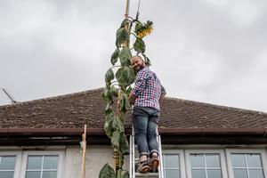 超過房頂高的向日葵