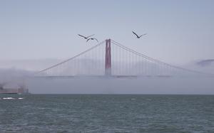 舊金山現(xiàn)“霧鎖金門大橋”美景