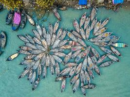孟加拉國港口船只如同綻放花朵