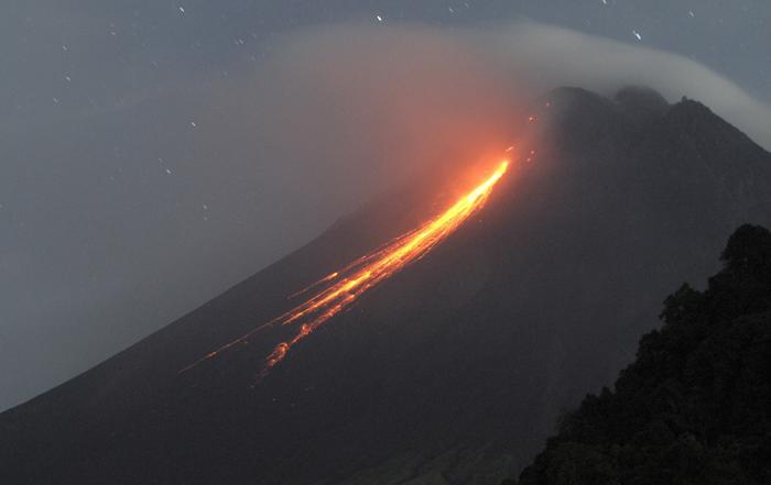 默拉皮火山熔巖流淌