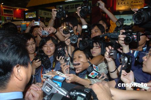 十月十八日,眾多媒體記者在威尼斯人會(huì)展中心舉行的第十二屆澳門國際貿(mào)易投資展覽會(huì)(MIF)上,爭搶采訪某省的負(fù)責(zé)人。規(guī)模宏大,盛況空前的第十二屆澳門國際貿(mào)易投資展覽會(huì)(MIF),以努力打造成國際貿(mào)易平臺為己任,引起了新聞媒體的極大關(guān)注。中新社發(fā) 史利 攝
