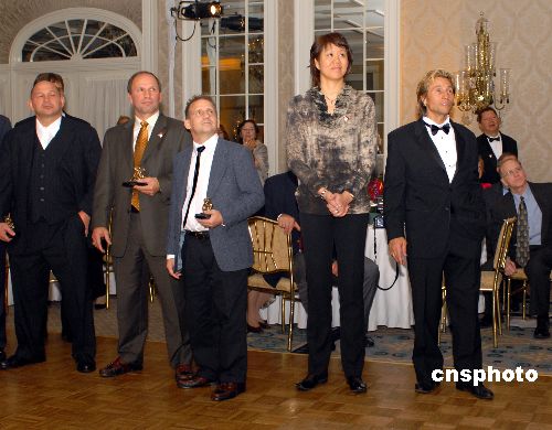 2007年新澤西冠軍之夜于當(dāng)?shù)貢r(shí)間10月20日在美國(guó)新澤西州希爾頓飯店舉行。大會(huì)會(huì)場(chǎng)放映著2008年北京奧運(yùn)會(huì)的宣傳片,場(chǎng)外北京奧運(yùn)會(huì)的宣傳畫(huà)到處可見(jiàn),大會(huì)紀(jì)念冊(cè)的封面上印著北京奧運(yùn)會(huì)紀(jì)念章。中國(guó)著名女排運(yùn)動(dòng)員、現(xiàn)任美國(guó)女排主教練的郎平作為大會(huì)特邀嘉賓出席了當(dāng)晚的活動(dòng),中新社發(fā) 龔文謨 攝