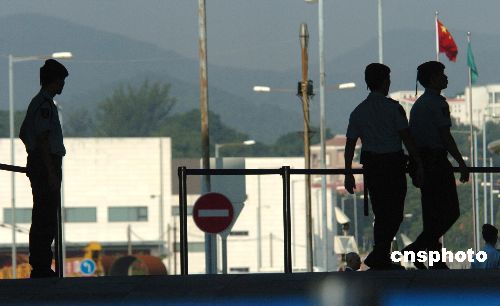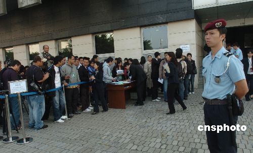 十一月五日,澳門前運輸工務(wù)司司長歐文龍涉嫌嚴重受賄案在終審法院開審,法院外三步一崗,五步一哨,戒備森嚴。被控七十六項罪名的歐文龍首度出庭應(yīng)訊,預計聆訊超過一個月。這是澳門回歸八年來首宗直接由終審法院主理的刑事案,被喻為“世紀巨貪案”。中新社發(fā) 史利 攝