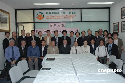 11月5日,中國(guó)國(guó)務(wù)院僑務(wù)辦公室副主任馬儒沛(前排左六)一行訪問澳洲中國(guó)和平統(tǒng)一促進(jìn)會(huì),與僑領(lǐng)們座談并合影。中新社發(fā) 葛明 攝
