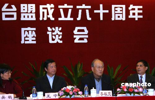 十一月十日,近百位上海老中青三代臺(tái)胞、臺(tái)盟盟員聚會(huì)座談,紀(jì)念臺(tái)灣民主自治同盟成立六十周年。當(dāng)日,臺(tái)盟上海市委還舉行了“電影劇本《啊,謝雪紅》讀書演講會(huì)”,緬懷臺(tái)盟首任主席、臺(tái)灣知名人士謝雪紅女士。一九四七年十一月十二日,臺(tái)盟在香港成立,是當(dāng)代中國八個(gè)民主黨派之一。圖為臺(tái)盟中央副主席李敏寬(右二)在座談時(shí)表示,臺(tái)盟走過了六十年愛國的革命的光榮道路,始終與中國共產(chǎn)黨風(fēng)雨同舟、長期合作。中新社發(fā) 許曉青 攝