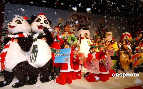 11月27日,香港海洋公園宣布,在12月15日至明年1月1日期間,將推出包括“冰雪世界”、“環(huán)球圣誕村”、“滿場(chǎng)驚喜玩之不盡”、“大玩特玩”四個(gè)主題景點(diǎn),為市民及游客帶來(lái)白色的圣誕 。圖為當(dāng)日小朋友們、“大熊貓”及雪人在漫天飄雪的白色世界迎接即將到來(lái)的圣誕節(jié)。中新社發(fā) 蔡蔓莉 攝