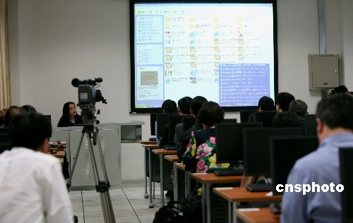 十一月二十九日,中國人民大學新聞學院副院長彭蘭,在該院為“第三期海外華文媒體高級研修班”學員做題為“網絡與新媒體技術”專題講座。中新社發(fā) 張勤 攝