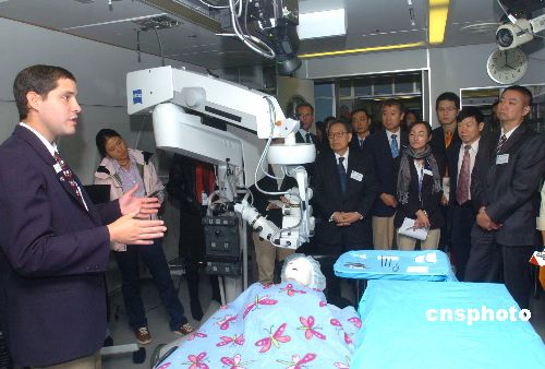 十二月五日,澳門特首何厚鏵(左四)在澳門國際機(jī)場(chǎng)親自主禮奧比斯眼科飛機(jī)醫(yī)院"光明之行"活動(dòng)開幕典禮。肩負(fù)全球救盲使命的奧比斯眼科飛機(jī)醫(yī)院來澳,將與澳門國際機(jī)場(chǎng)合作開展為期三天的"光明之行"參觀活動(dòng)及慈善拉飛機(jī)活動(dòng),旨在鼓勵(lì)市民關(guān)注全球失問題,喚起愛心,救助盲人。 中新社發(fā) 史利 攝
